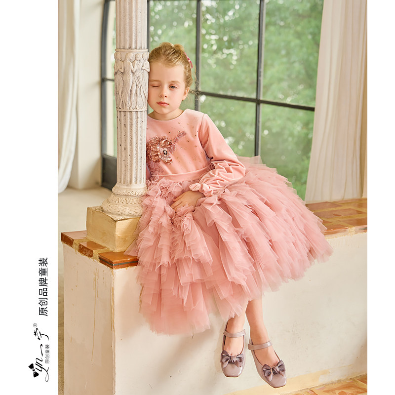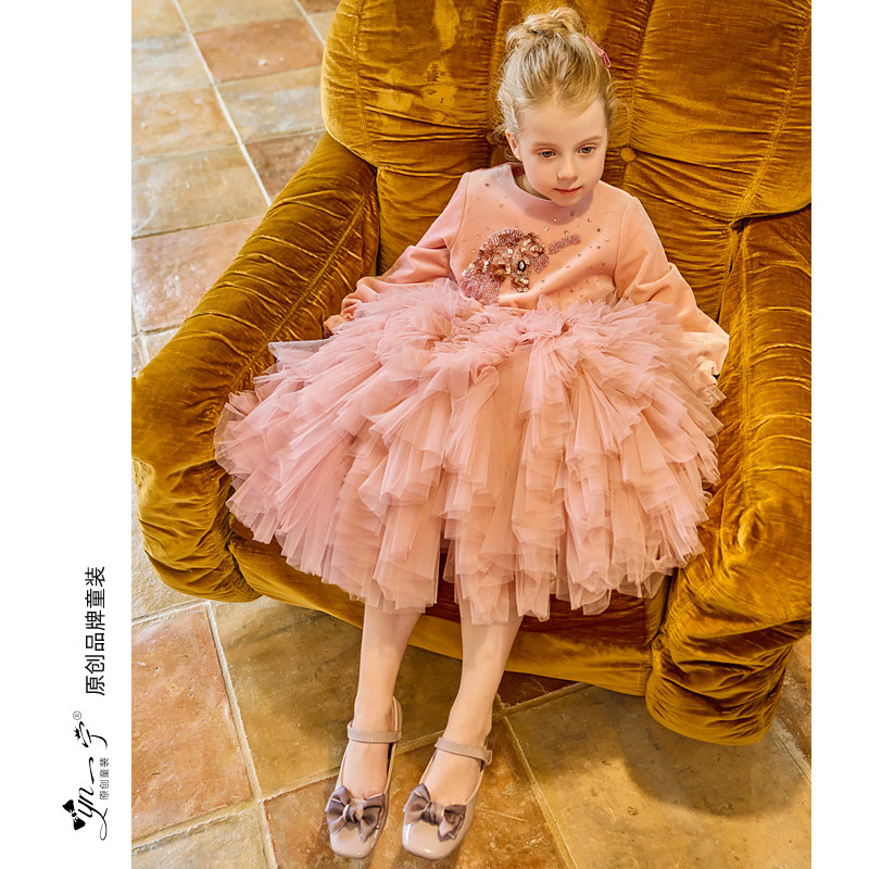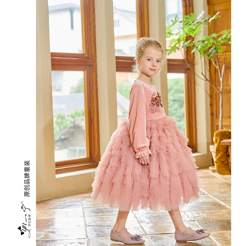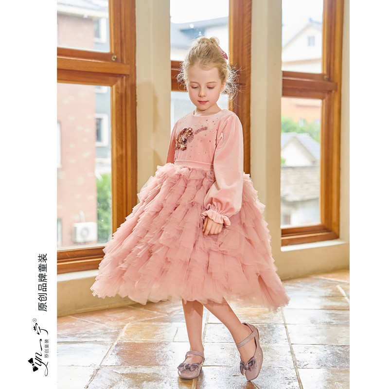 秋冬大女童丝绒连衣裙新年儿童粉色公主裙冬装小宝宝洋气蓬蓬裙子