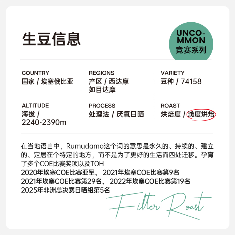 ColinPlus 25产季 埃塞西达摩 如目达摩 74158厌氧日晒手冲咖啡豆