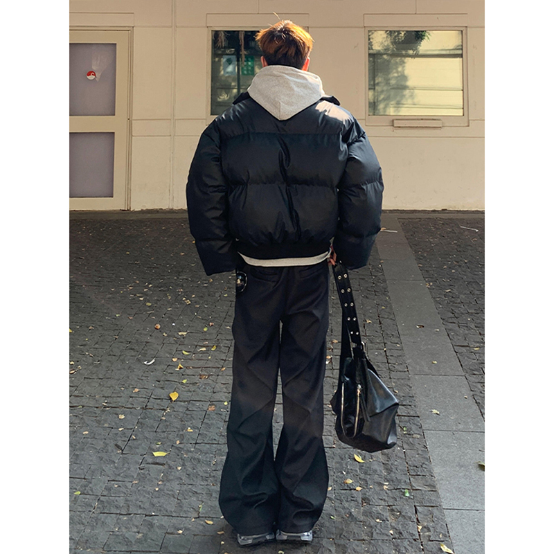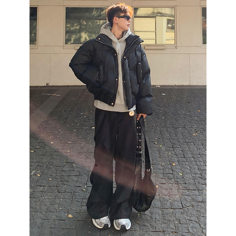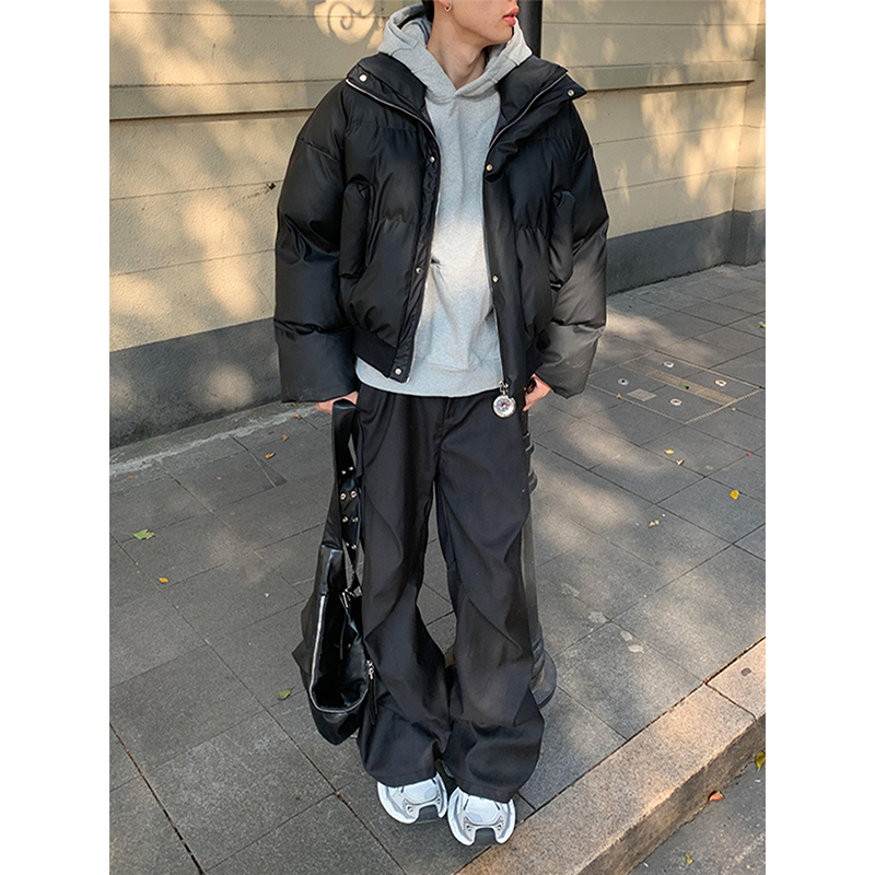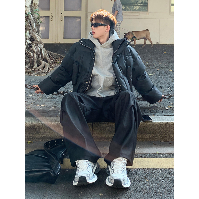 美式复古pu皮羽绒棉服套装男款冬季穿搭高级感痞帅短款廓形面包服