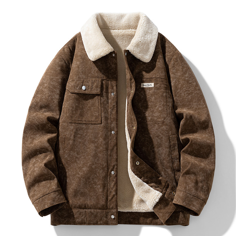 罗蒙男士羊羔绒休闲外套秋冬季加绒加厚2025新款保暖翻领夹克男款