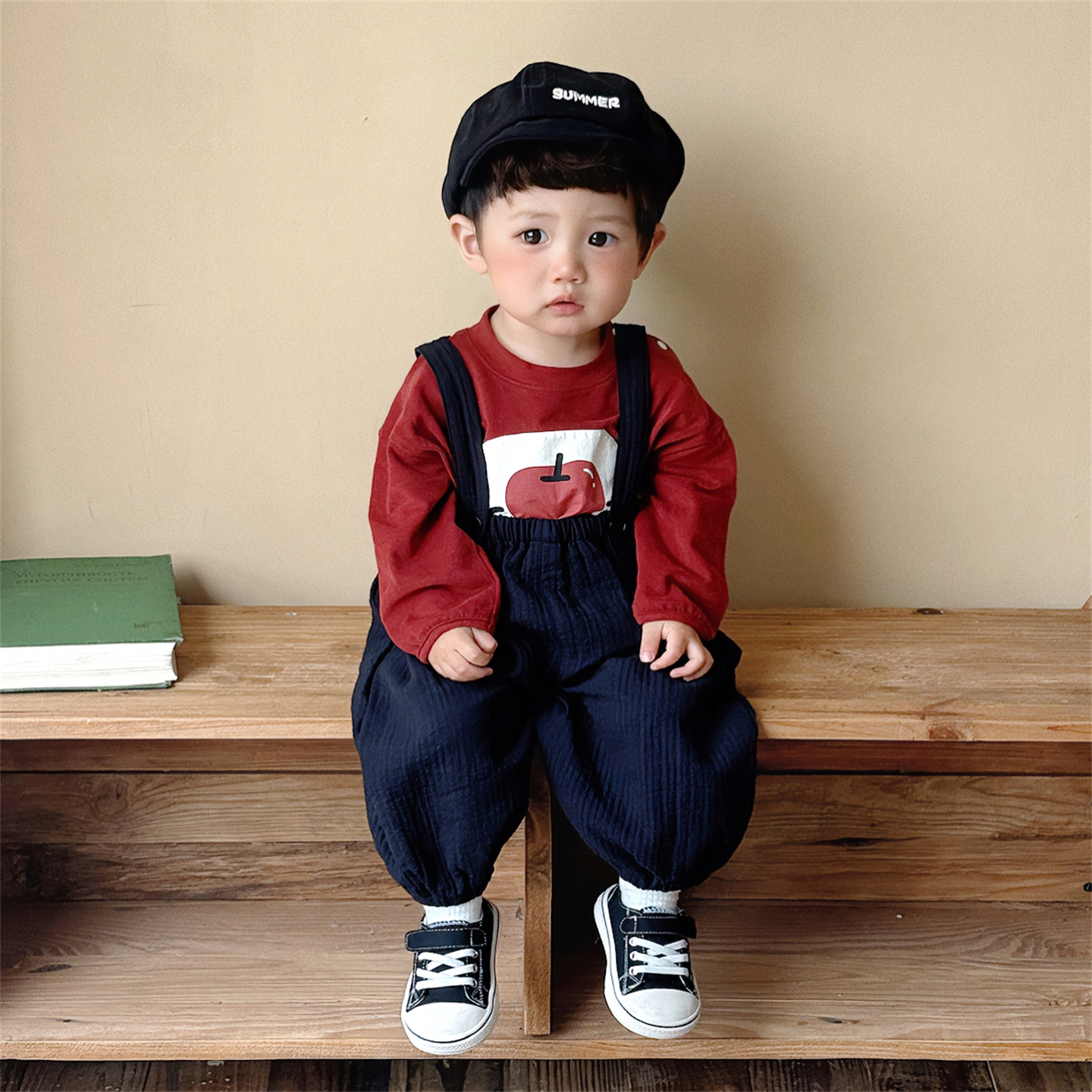 初秋宝宝套装韩版洋气婴儿连体衣春秋款背带裤两件套周岁外出服潮