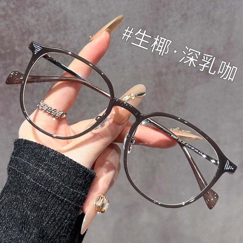 日系眼镜女近视可配度数超轻咖色复古圆框素颜专业男配平光眼镜框