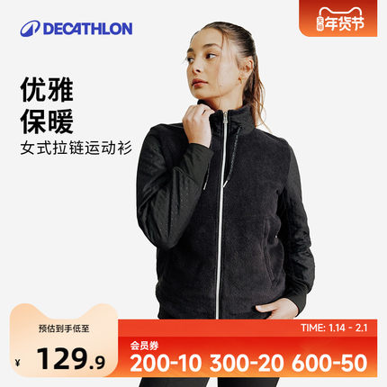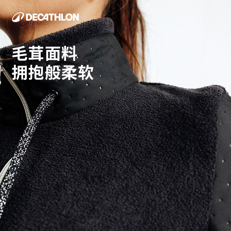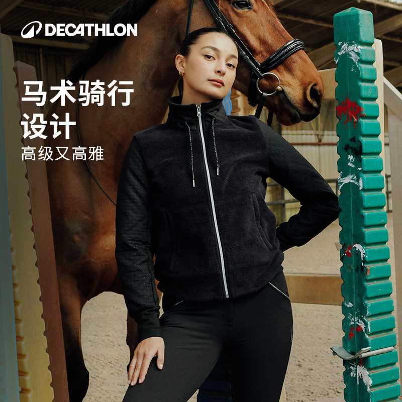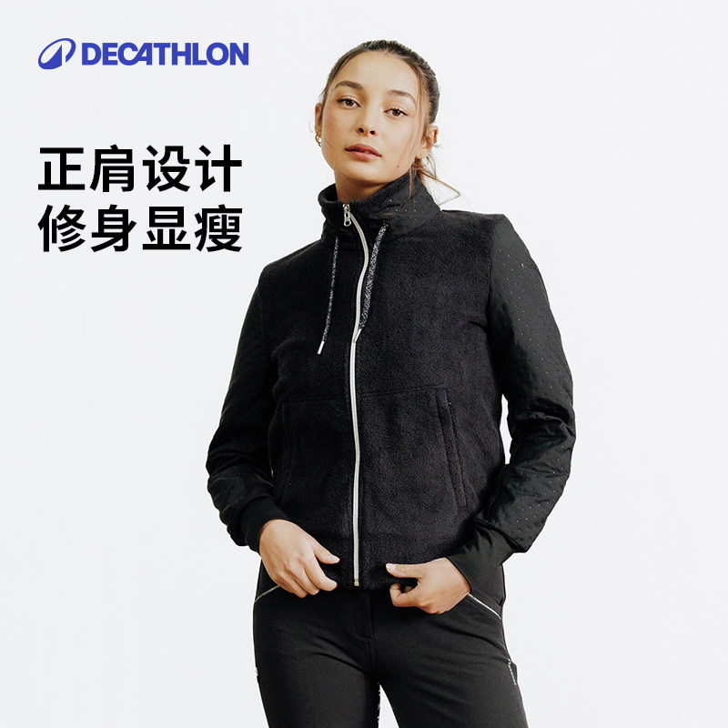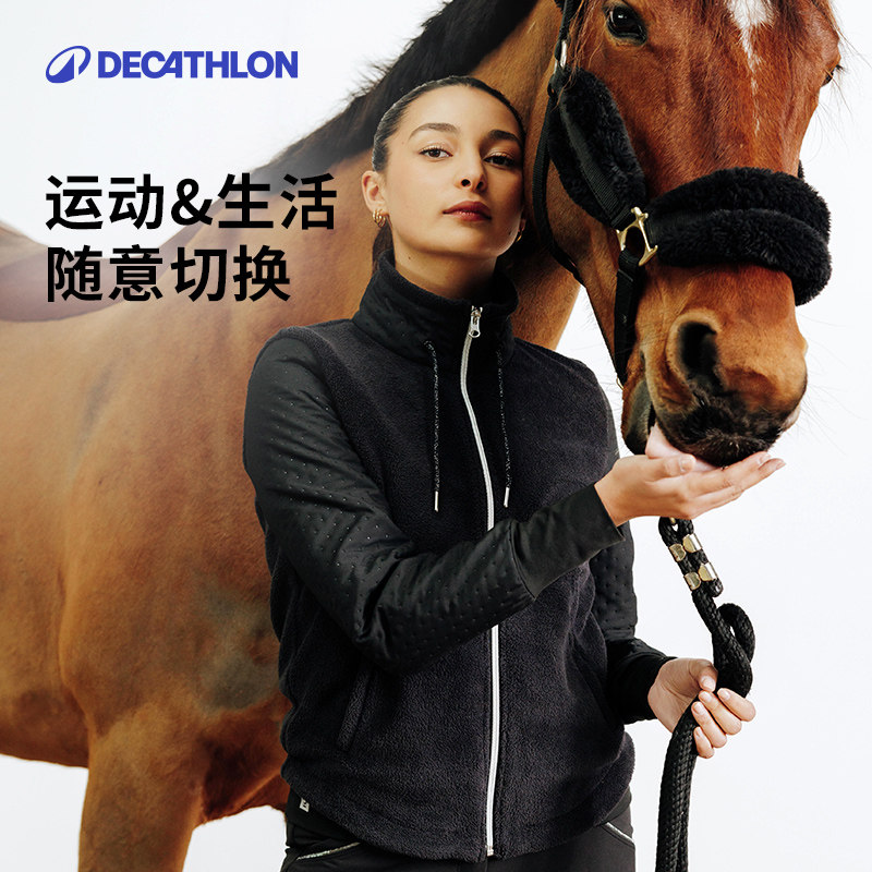 迪卡侬女士外套马术保暖冬装休闲运动抓绒衣慵懒夹克美式短款OVHR