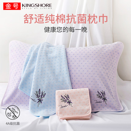 金号4A级抗菌防螨枕巾纯棉割绒绣花柔软吸水全棉男女成人枕头巾