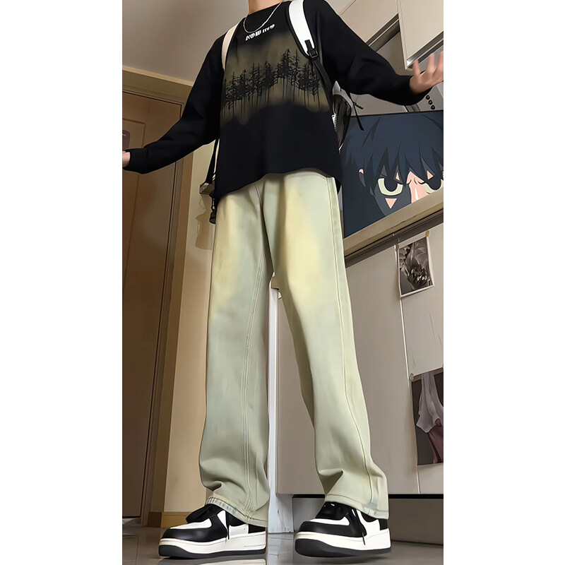 2025秋冬新款男裤美式高街潮流牛仔裤直筒阔腿微喇休闲裤大长腿
