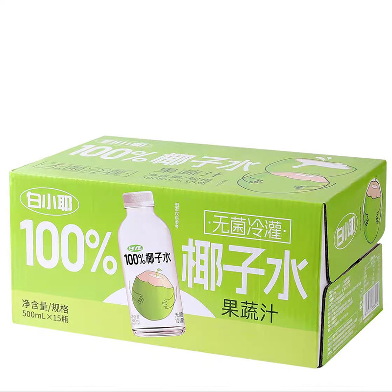 白小椰100%椰子水500ml*15瓶NFC椰汁椰青椰子汁饮料饮品整箱批发