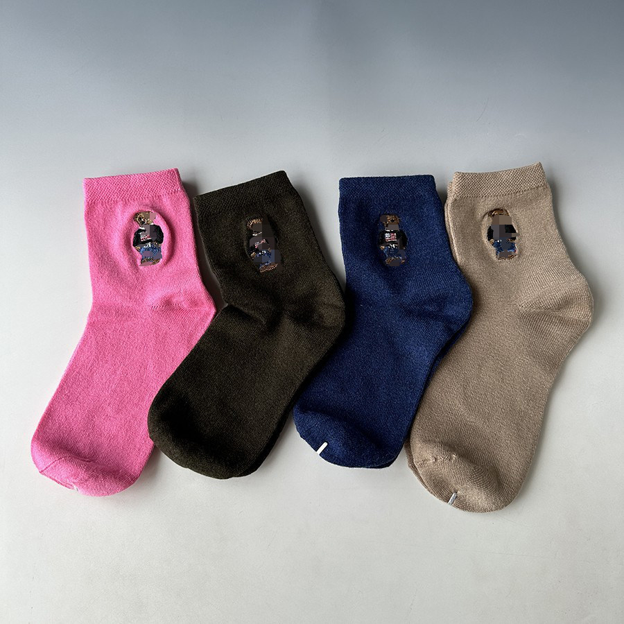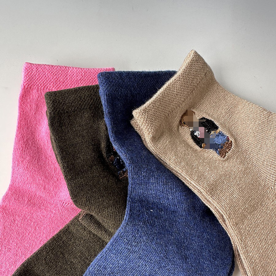 新品日系女袜中筒仿羊绒刺绣小熊