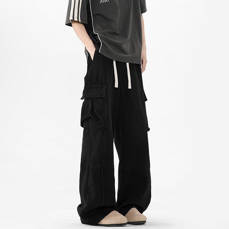 啄木鸟大码美式做旧工装牛仔裤男春秋季新款裤子宽松直筒阔腿长裤