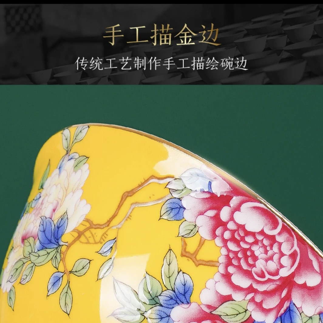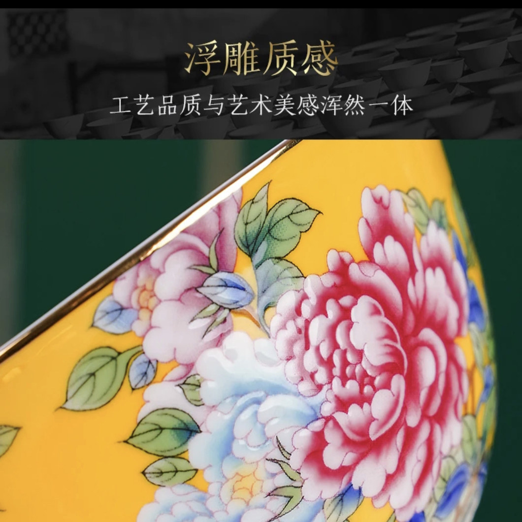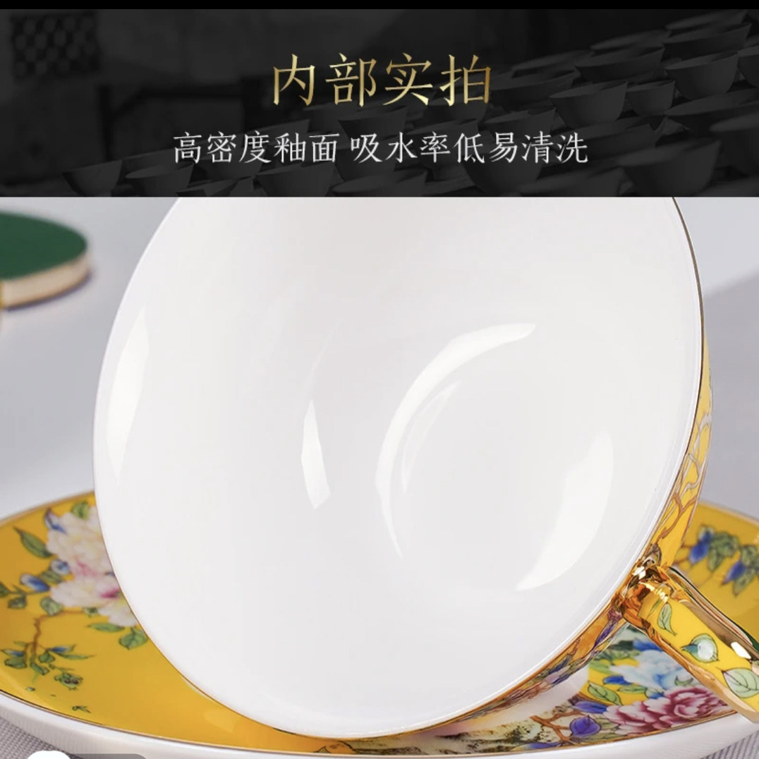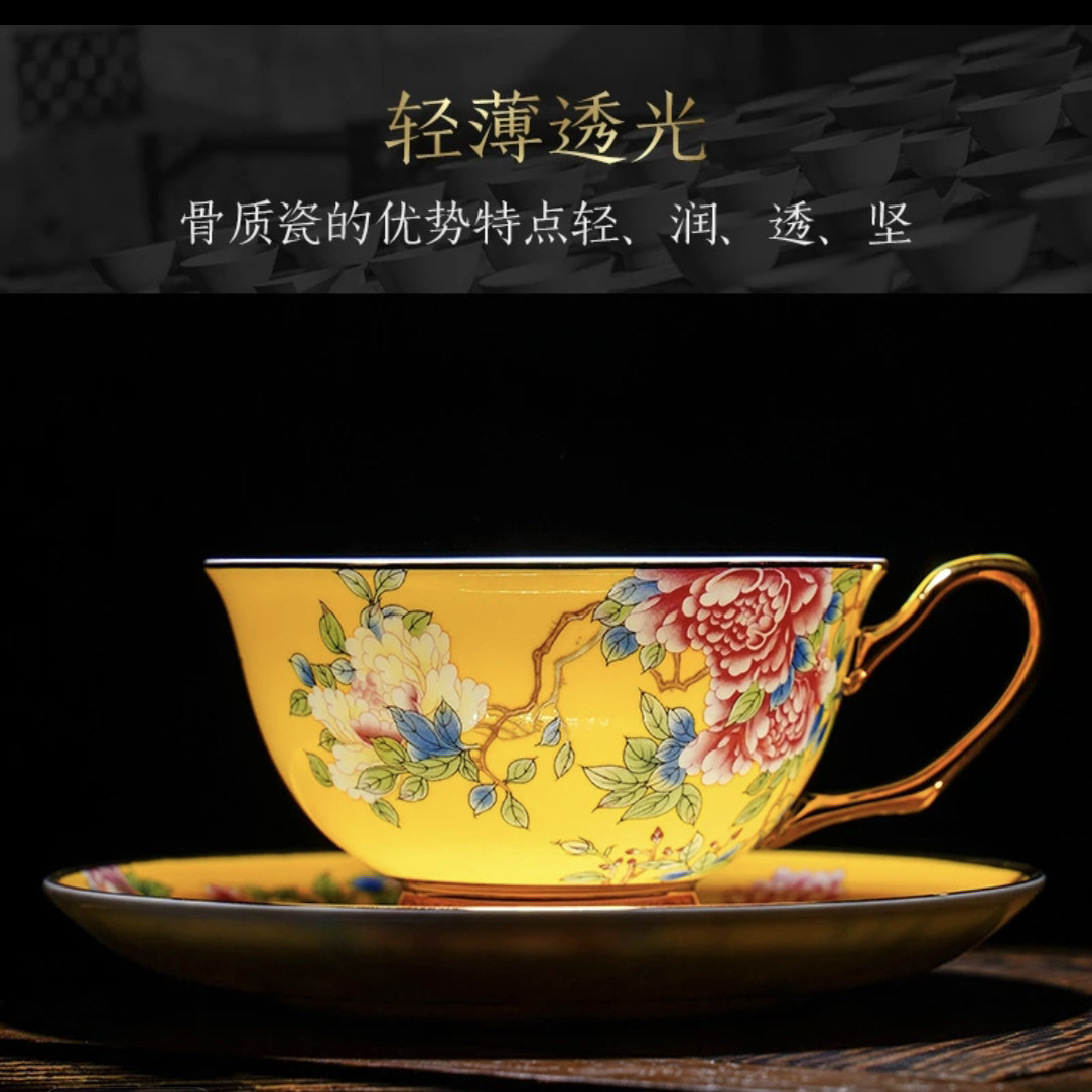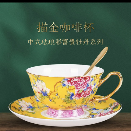 景德镇骨瓷咖啡杯套装中式宫廷风牡丹花手工描金珐琅彩高档礼品