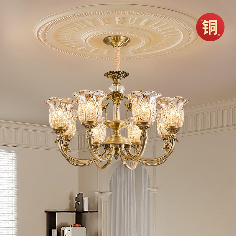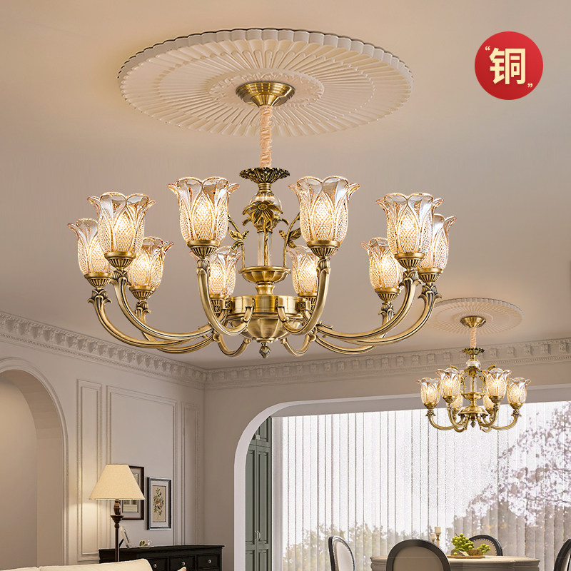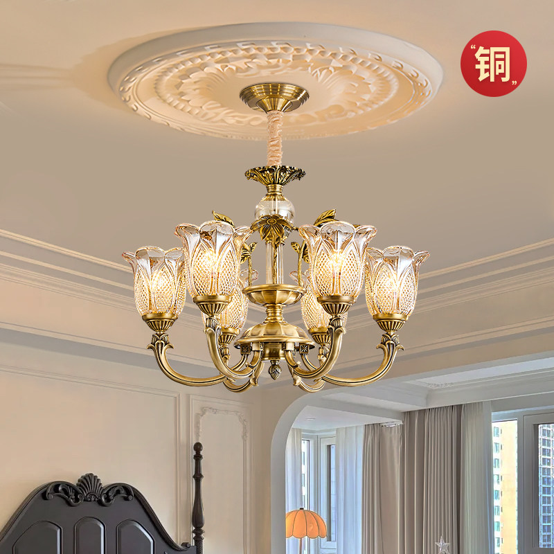 美式吊灯全铜客厅水晶灯具法式餐厅灯卧室灯法式简约大气复古中山