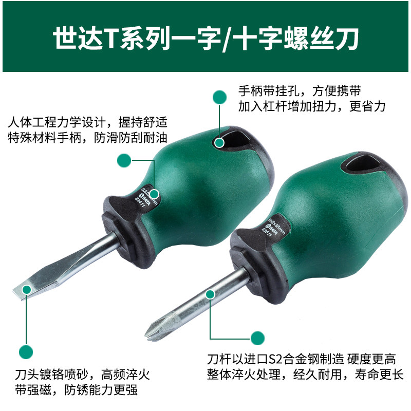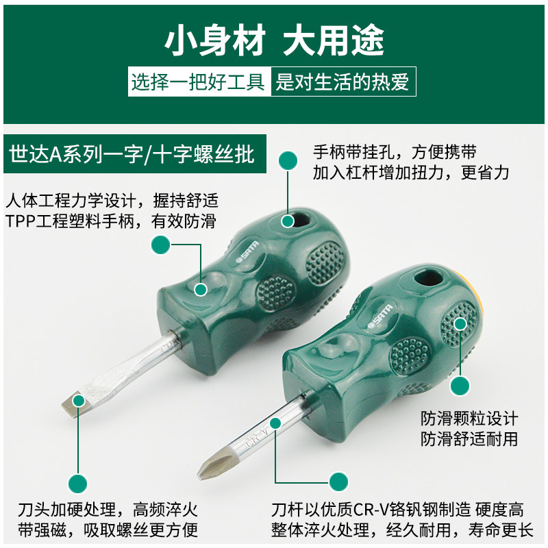 世达小萝卜头螺丝刀十字一字超短柄小胖子肥仔起子武大郎螺丝批