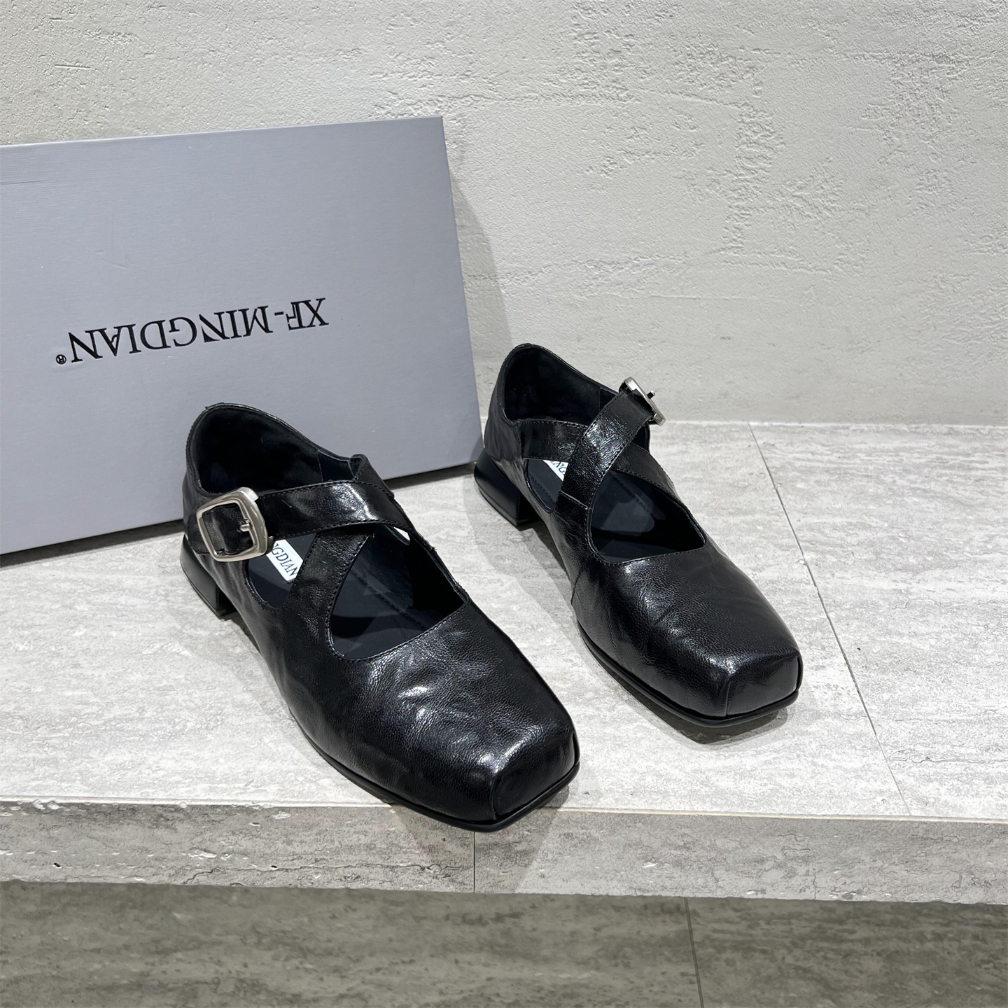 欧洲站女2025秋新款欧货真皮方头粗跟交叉带英伦乐福单鞋玛丽珍鞋
