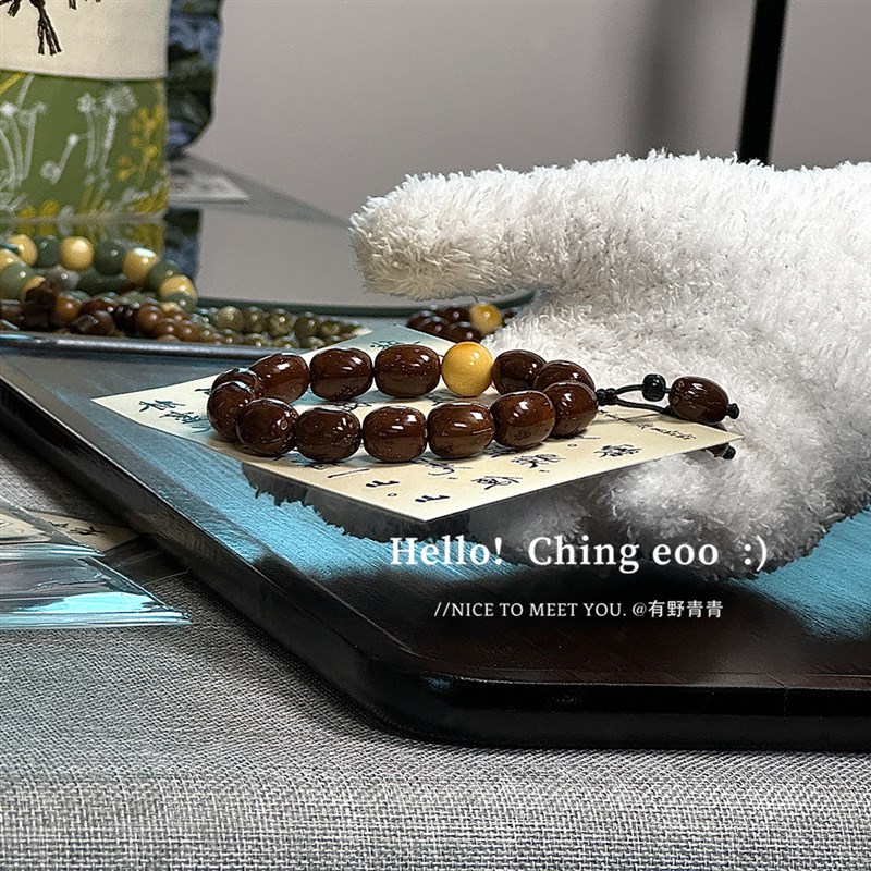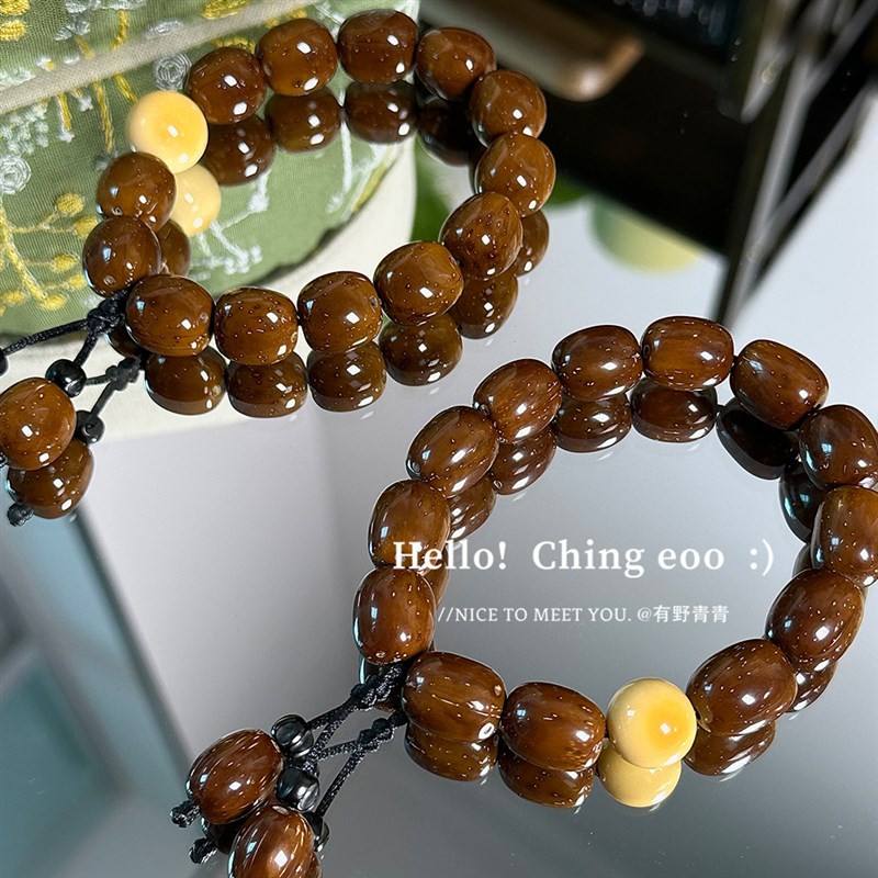 青青家 榛果芝士 原创设计紫金鼠枣K形菩提子缅黄芝士文玩手