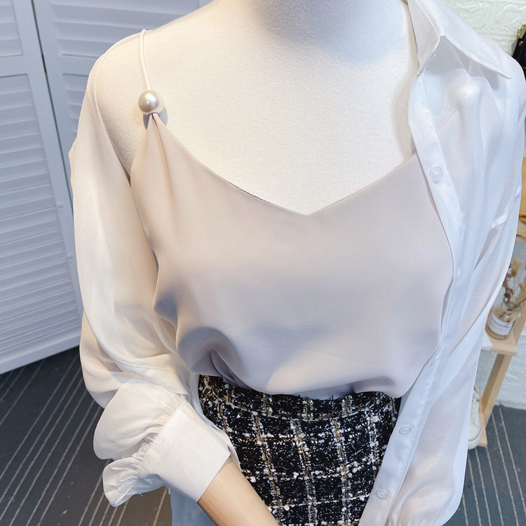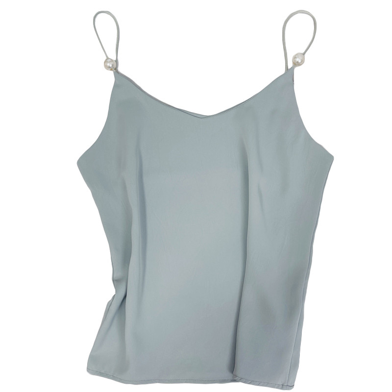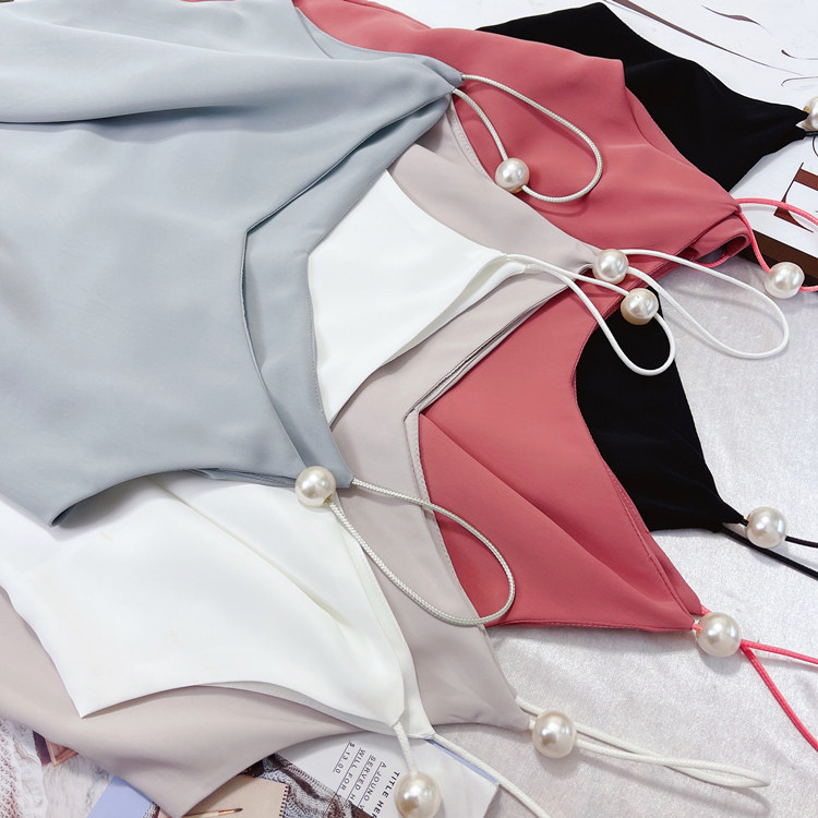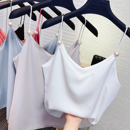 珍珠细肩带V领雪纺吊带背心女春夏季外穿内搭宽松无袖打底衫上衣