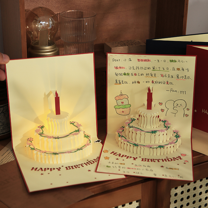 生日贺卡3d立体蛋糕ins风小众高级感送男女朋友留言祝福卡片礼物
