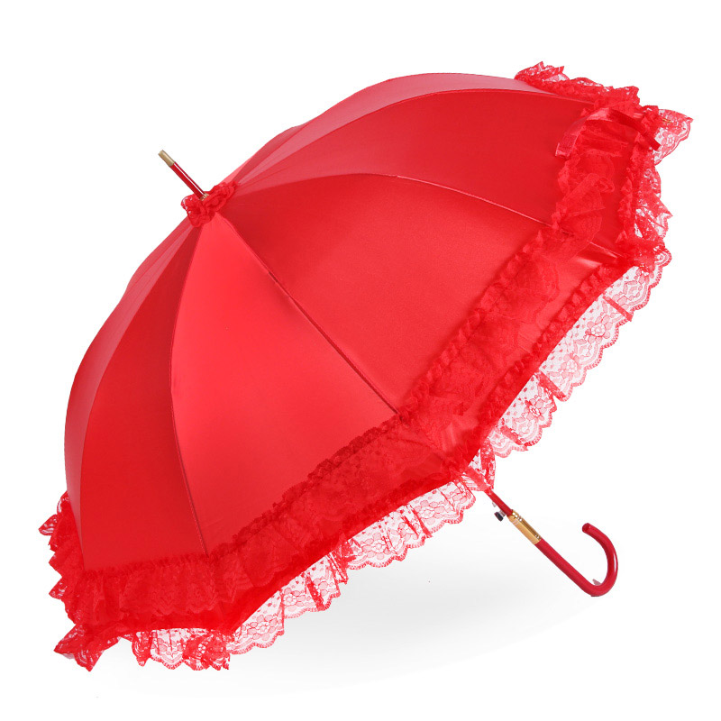 大红色雨伞结婚伞创意新娘出门用的伞长柄婚礼喜庆出嫁蕾丝红伞
