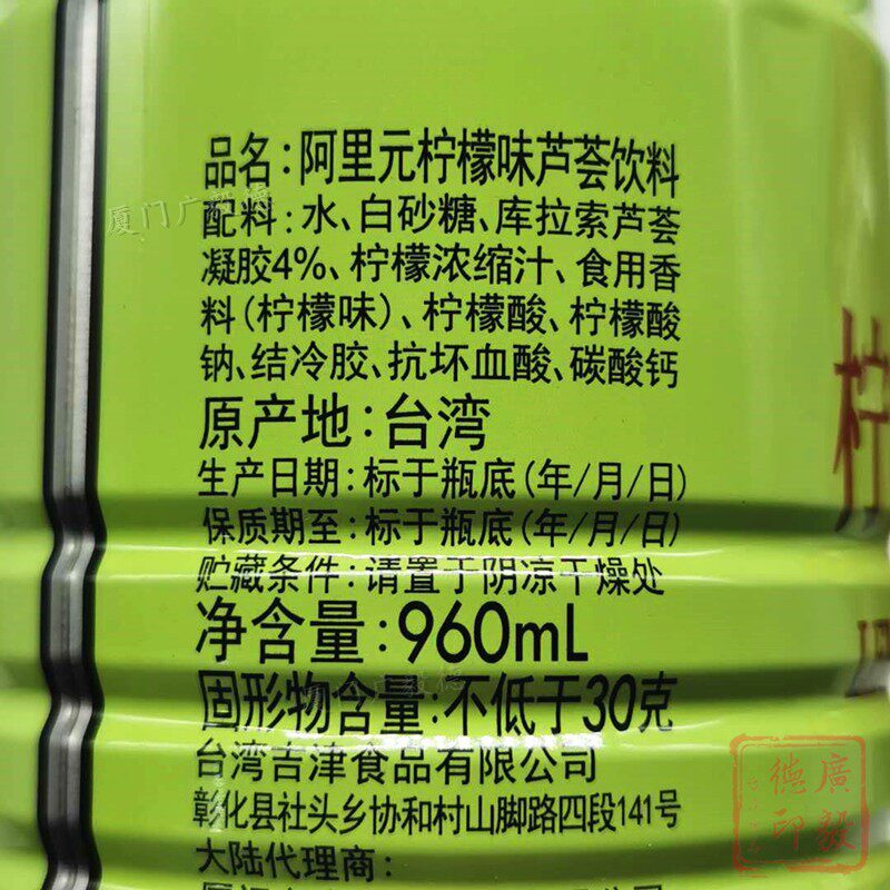 聚餐果汁台湾阿里元柠檬芦荟饮料