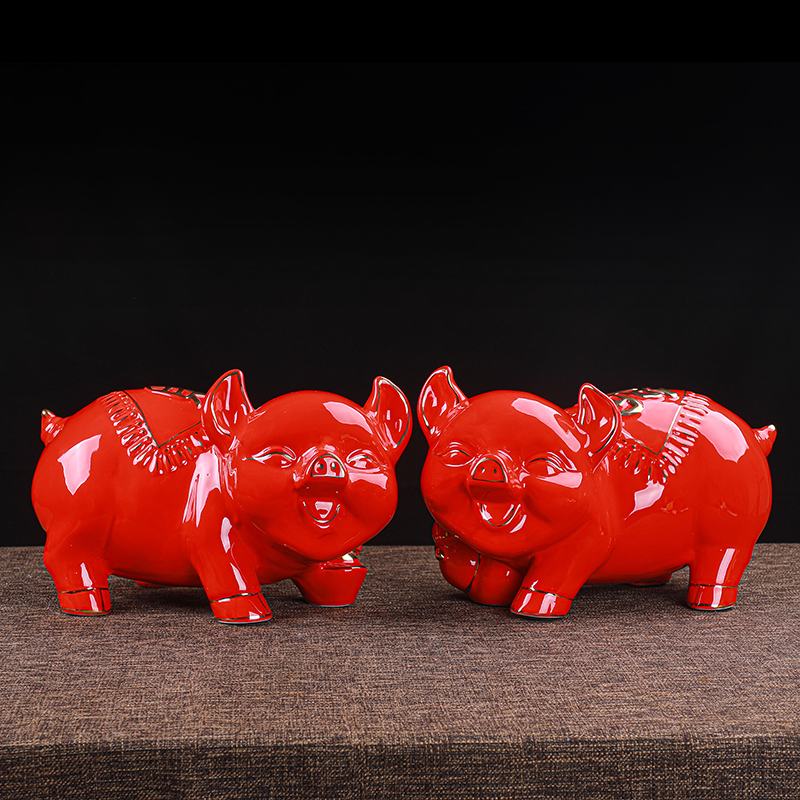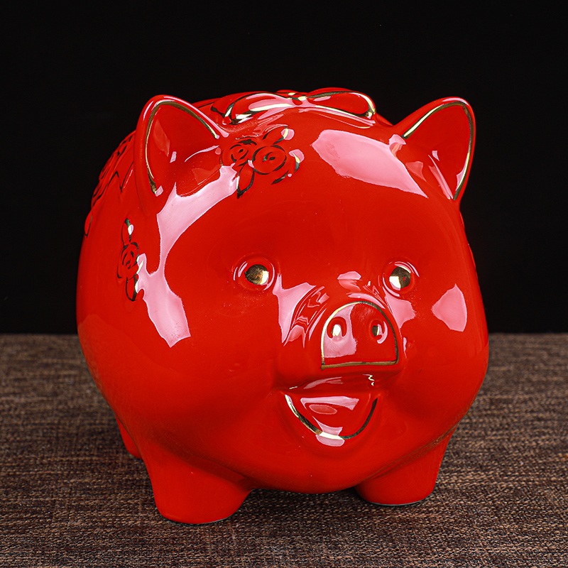 陶瓷猪存钱罐储蓄罐儿童成人开业摆件金猪储钱罐红色小猪可爱礼品
