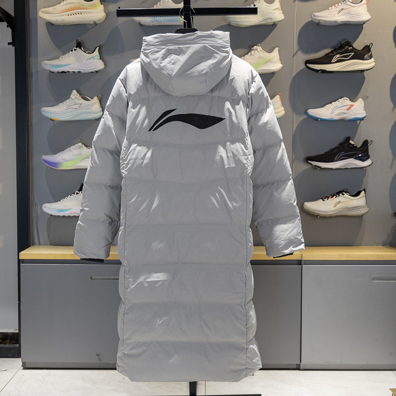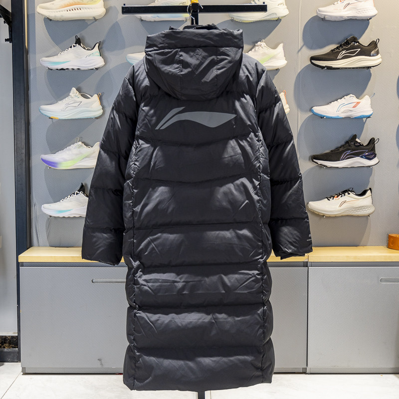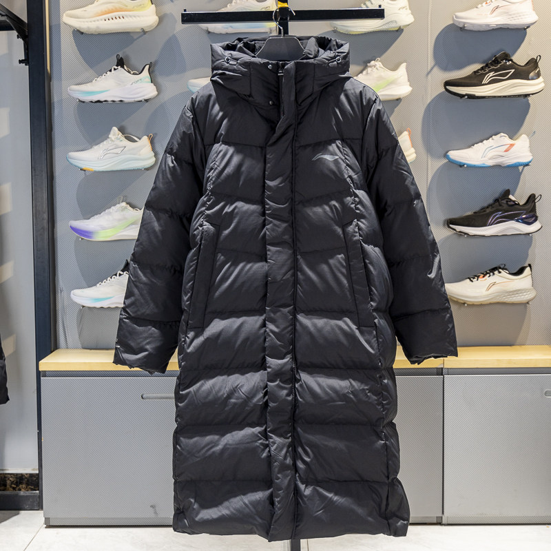 李宁长款羽绒服男子2025冬季新款防泼水鸭绒保暖连帽外套AYMV217