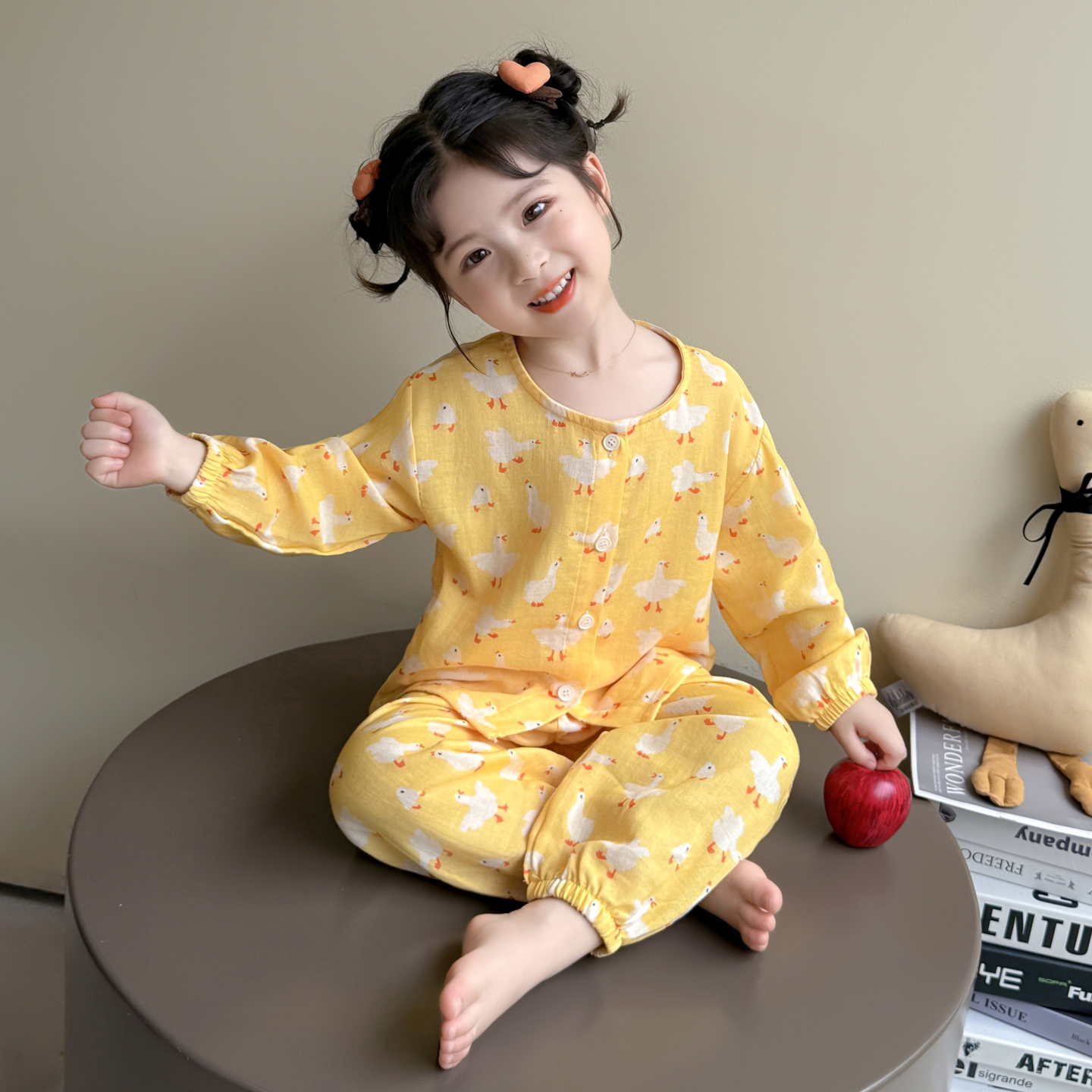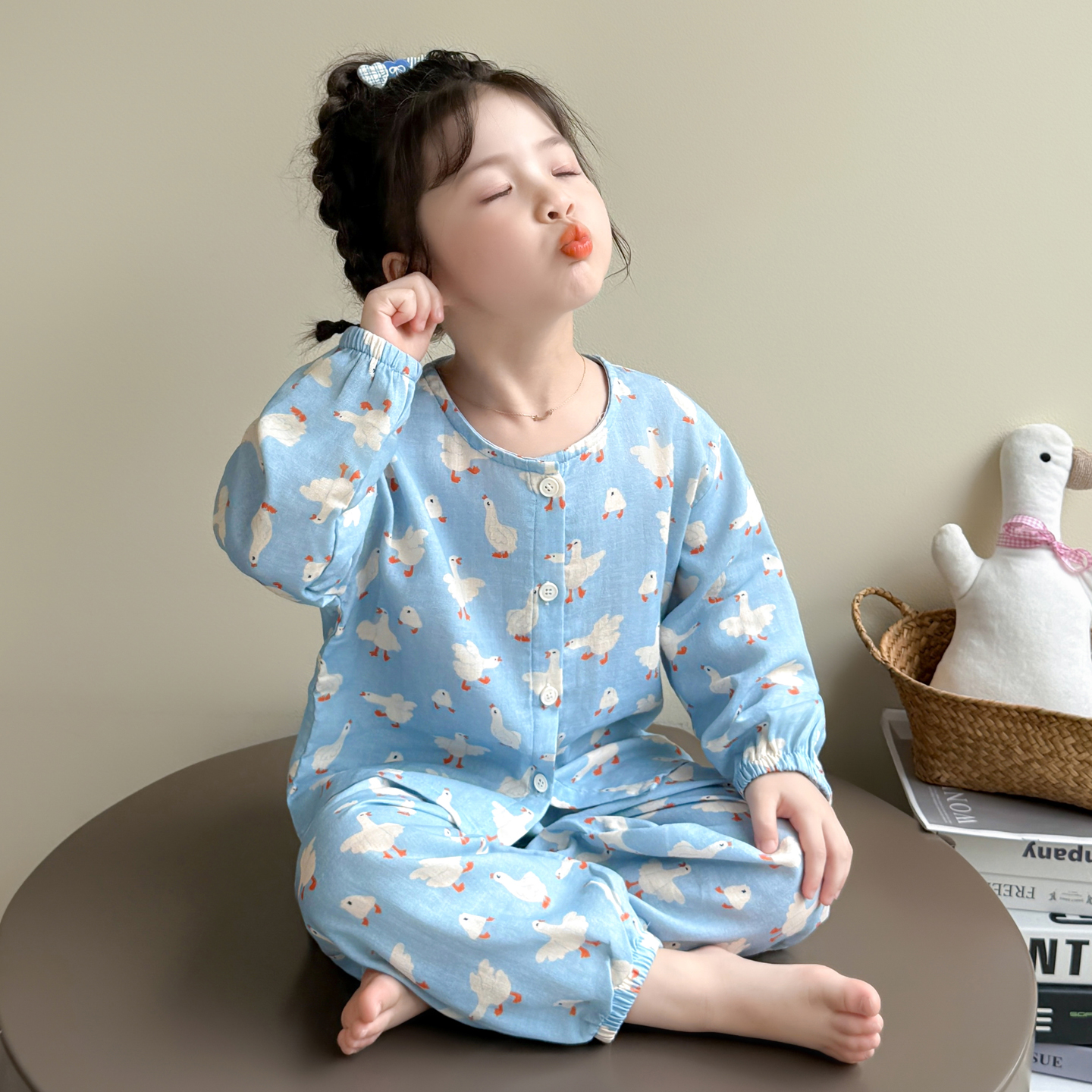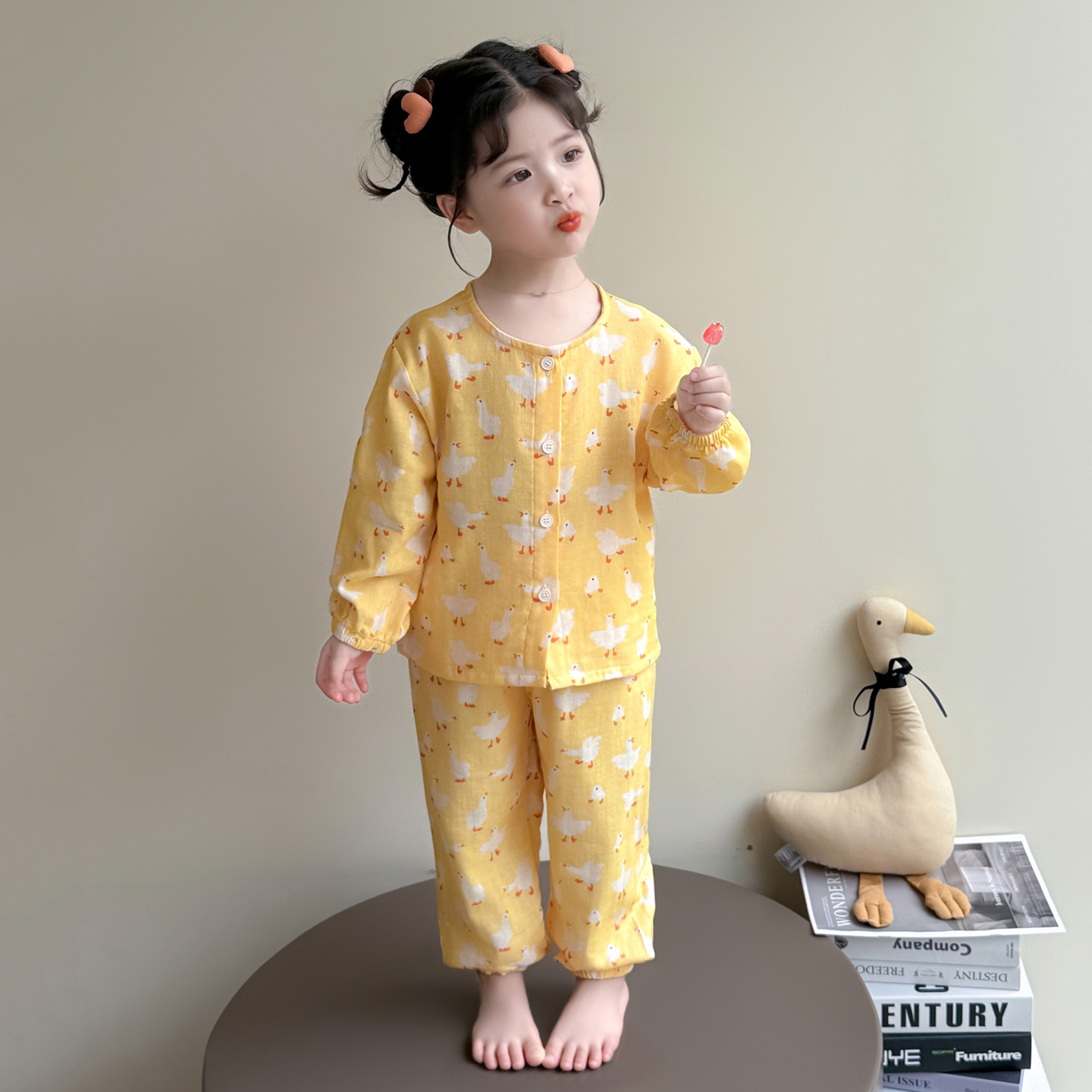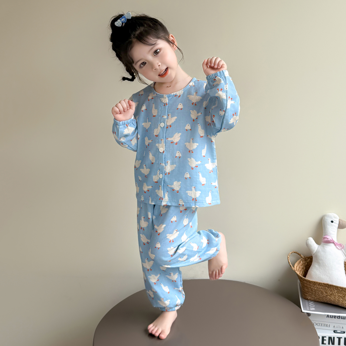 女童睡衣春秋款2025新款纯棉纱布套装儿童长袖长裤开衫女宝家居服