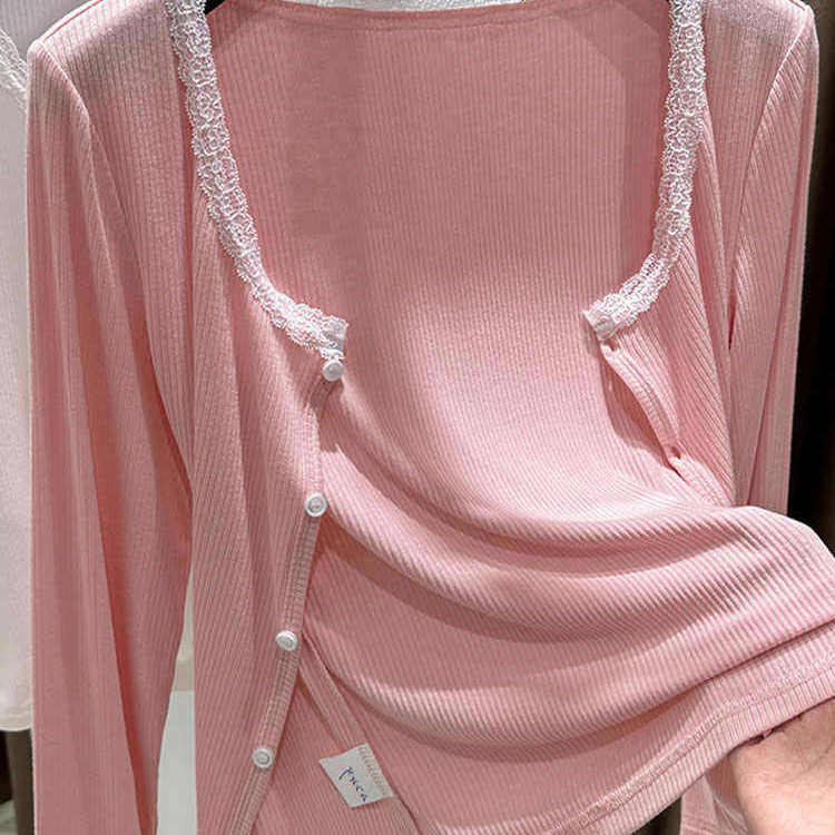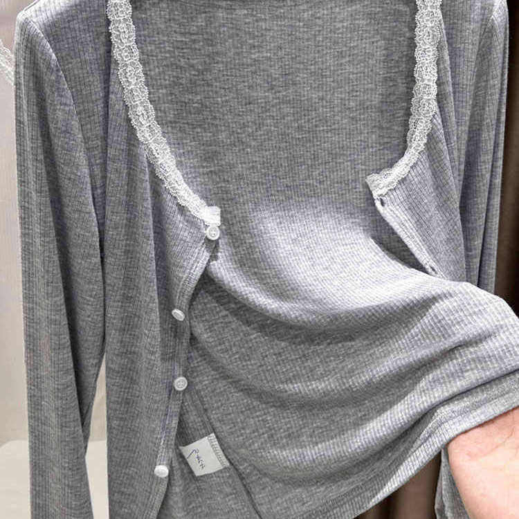 黑色防晒开衫薄款女夏配吊带裙外搭披肩圆领花边长袖短外套短上衣