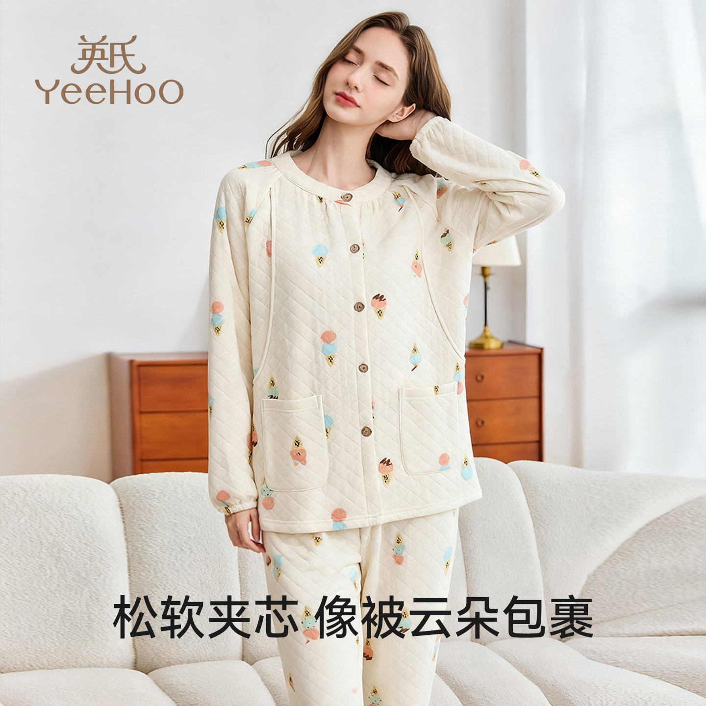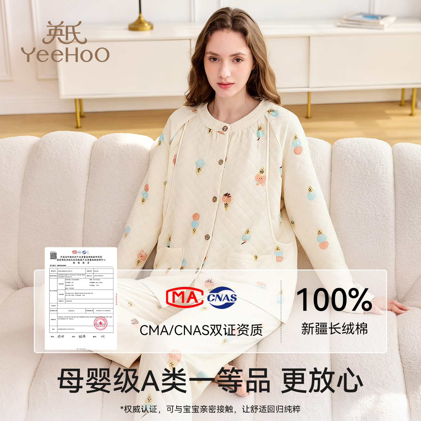英氏月子服秋冬产后纯棉哺乳睡衣秋冬季加厚A类孕妇家居服套装