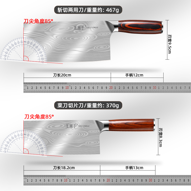 王麻子菜刀家用大马士革纹刀具厨房锻打切片刀厨师专用切菜刀旗舰