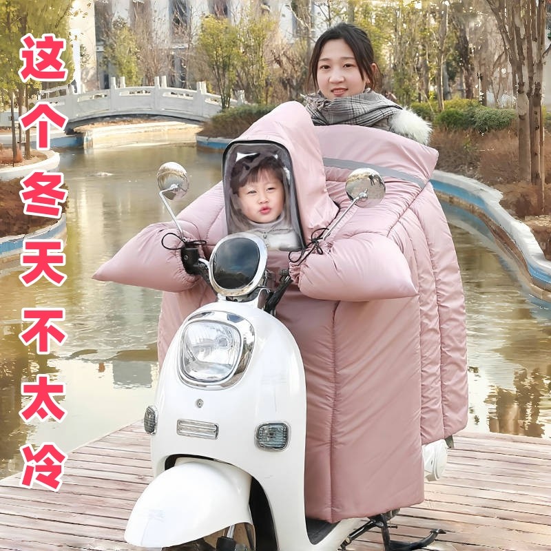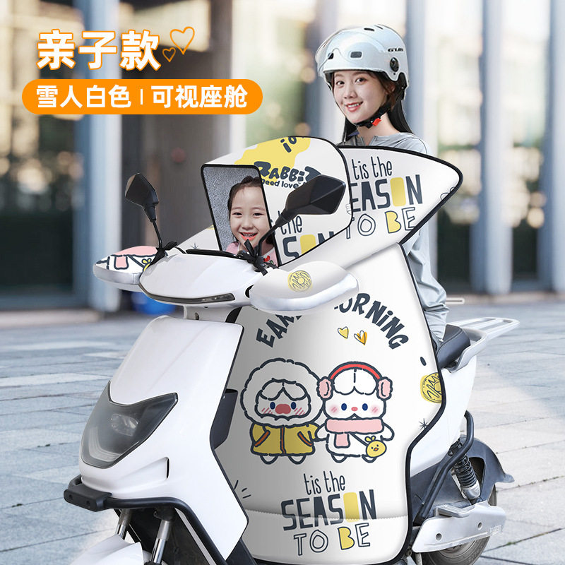 亲子款电动车挡风被冬季PU挡风被加绒加厚电瓶车儿童帽子挡风罩