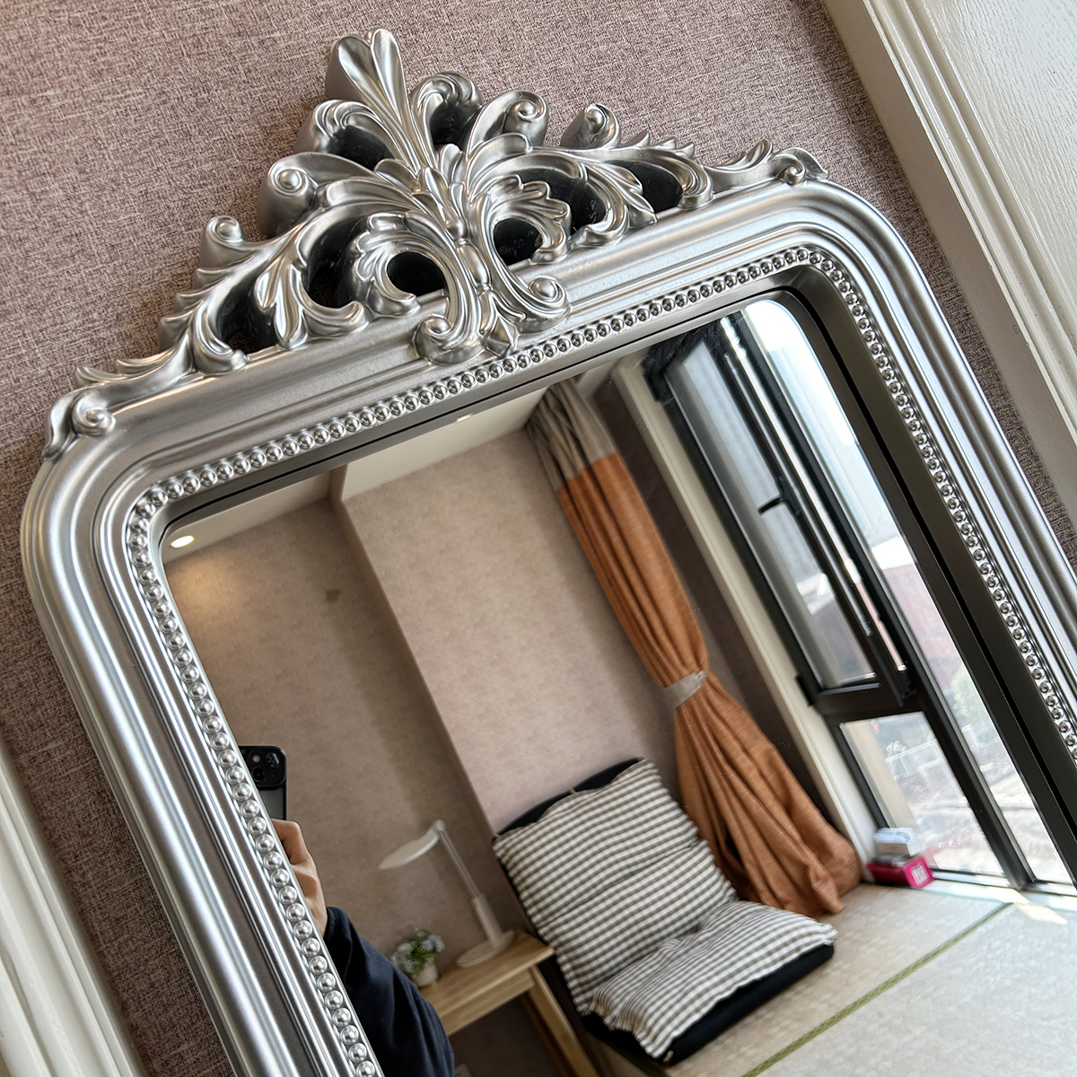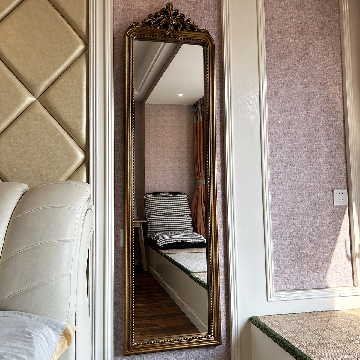 欧式法式复古雕花穿衣镜卧室壁挂全身镜家用落地试衣镜子窄墙面镜