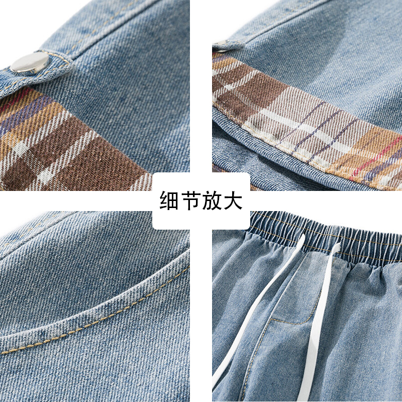 WASSUP GLORY抽绳牛仔短裤男夏季港风复古休闲裤子直筒宽松七分裤