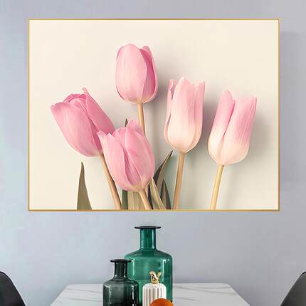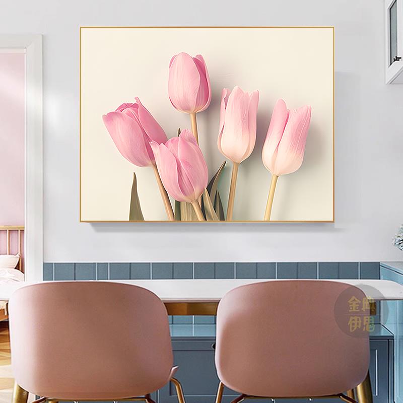 粉色郁金香花卉钻石画2024新款客厅卧室餐厅手工点贴钻十字绣满钻