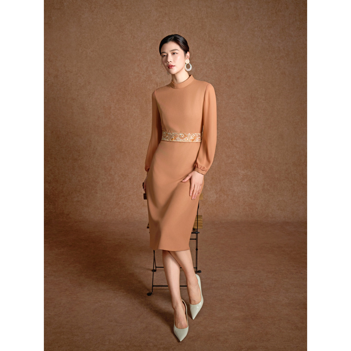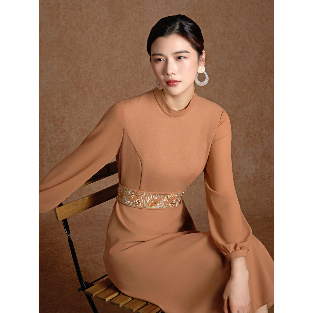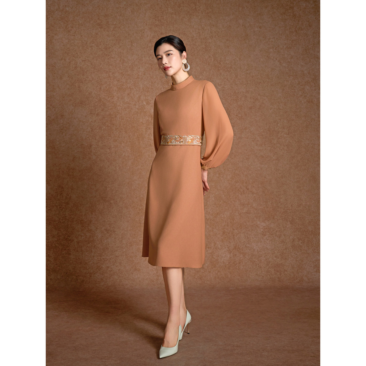 【东方刺绣】BBLLUUEE/粉蓝衣橱2026春装新款中式立领收腰连衣裙