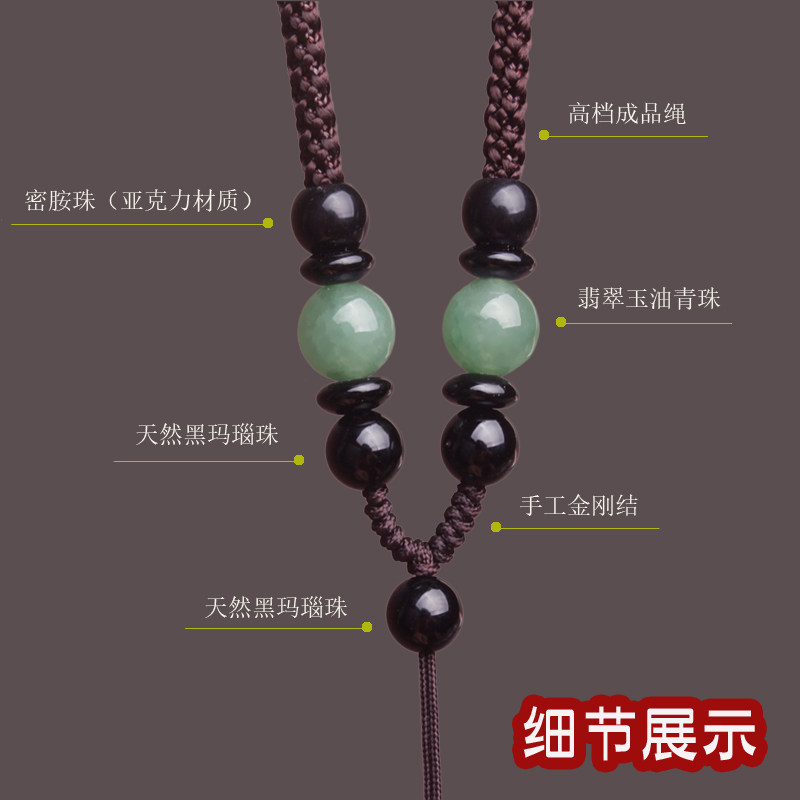高端手工平安扣玉佩绳油青翡翠玉坠项链绳子男女菩提挂件项链挂绳