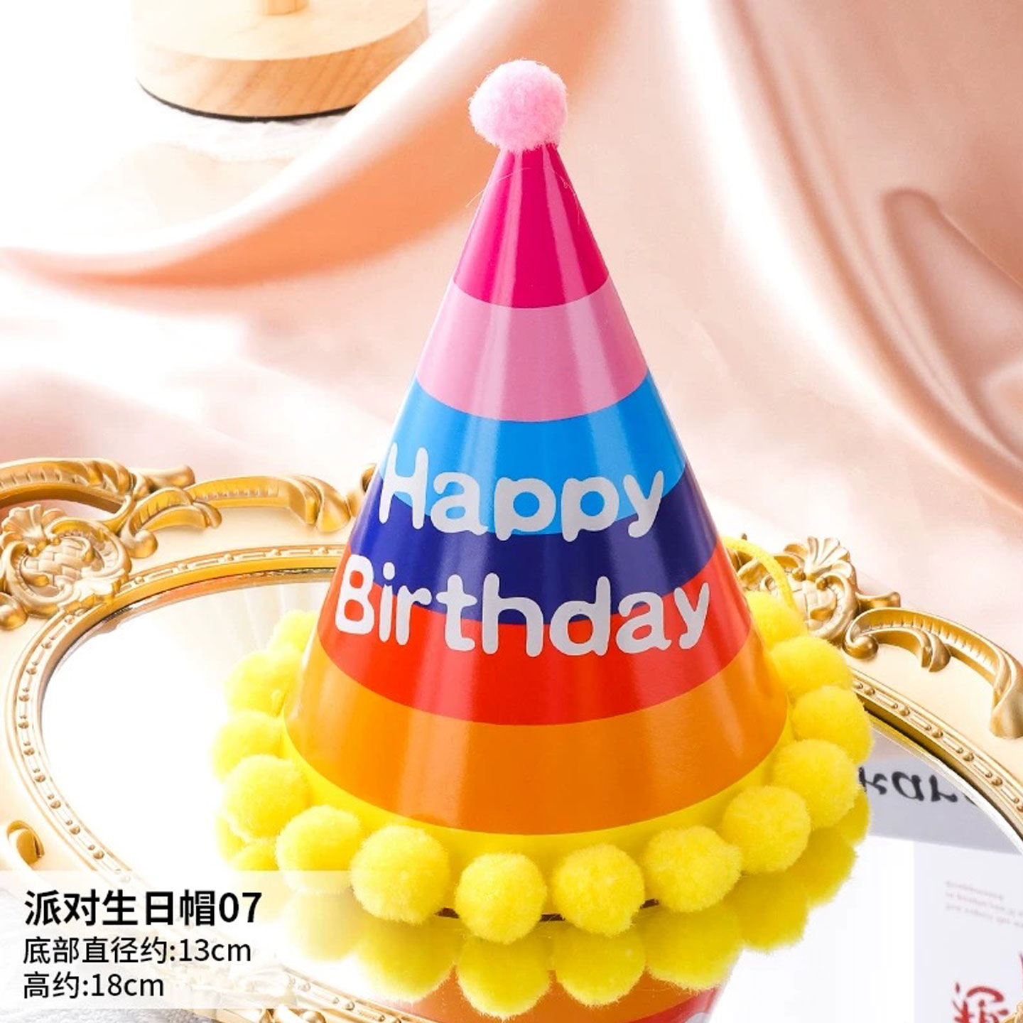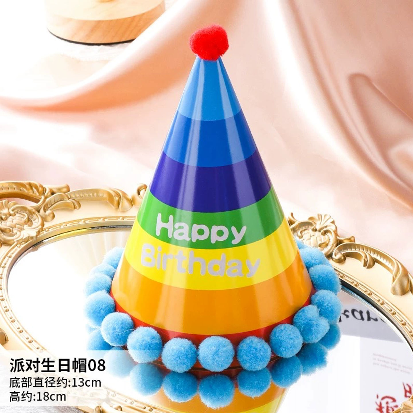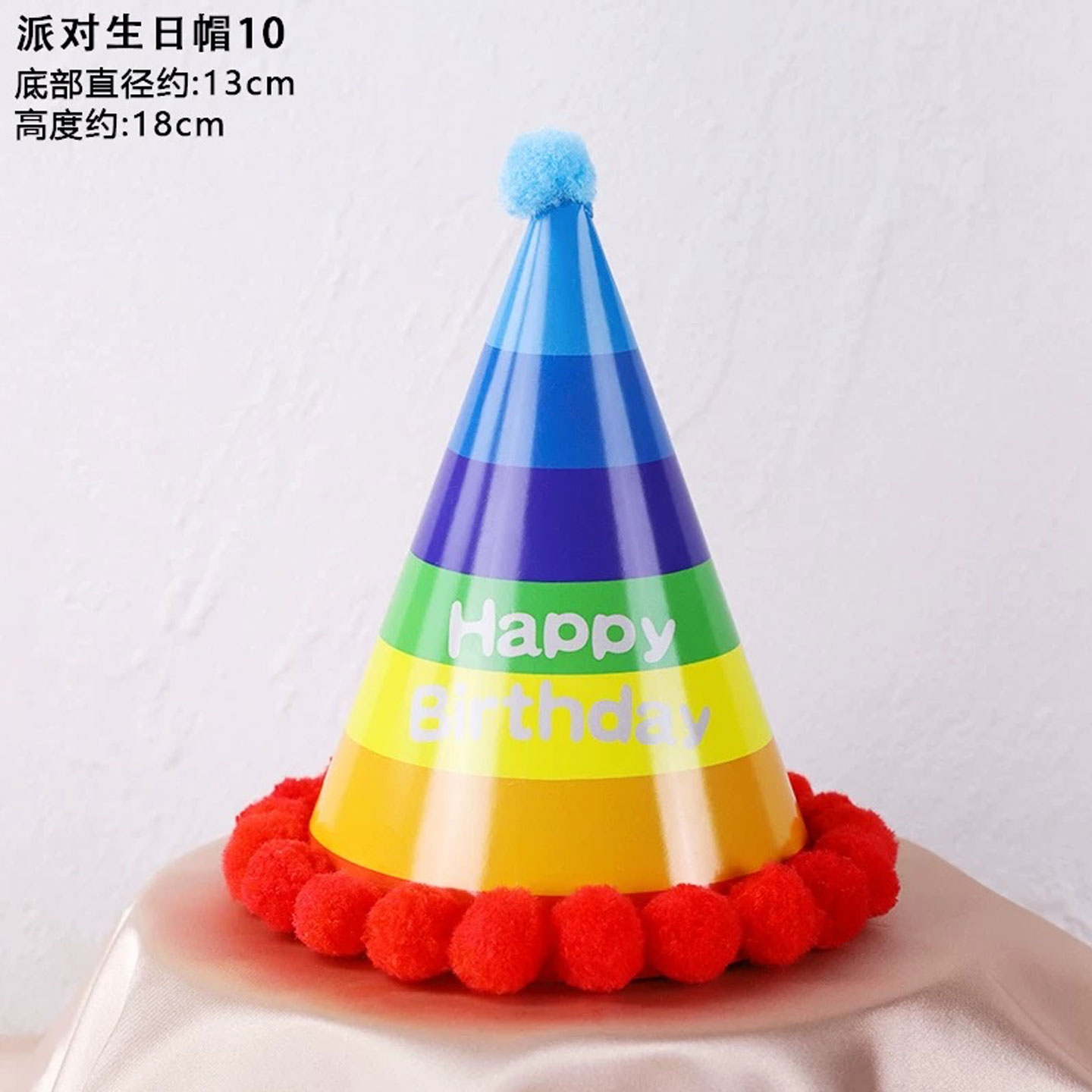 10个网红成人蛋糕帽子儿童宝宝周岁皇冠派对帽卡通彩虹毛球生日帽