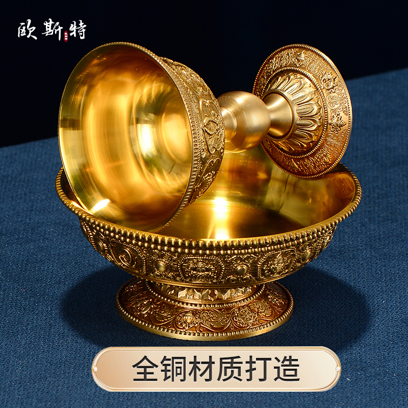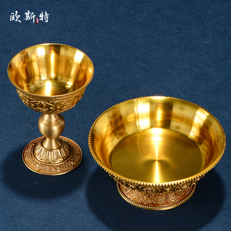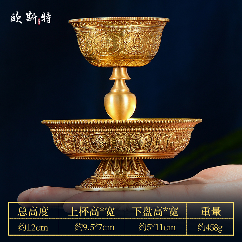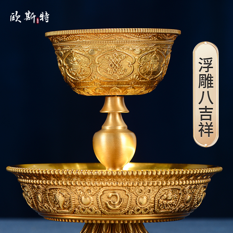护杯法杯 铜鎏金浮雕八吉祥贡杯净水杯家用圣水杯 财神贡酒杯摆件