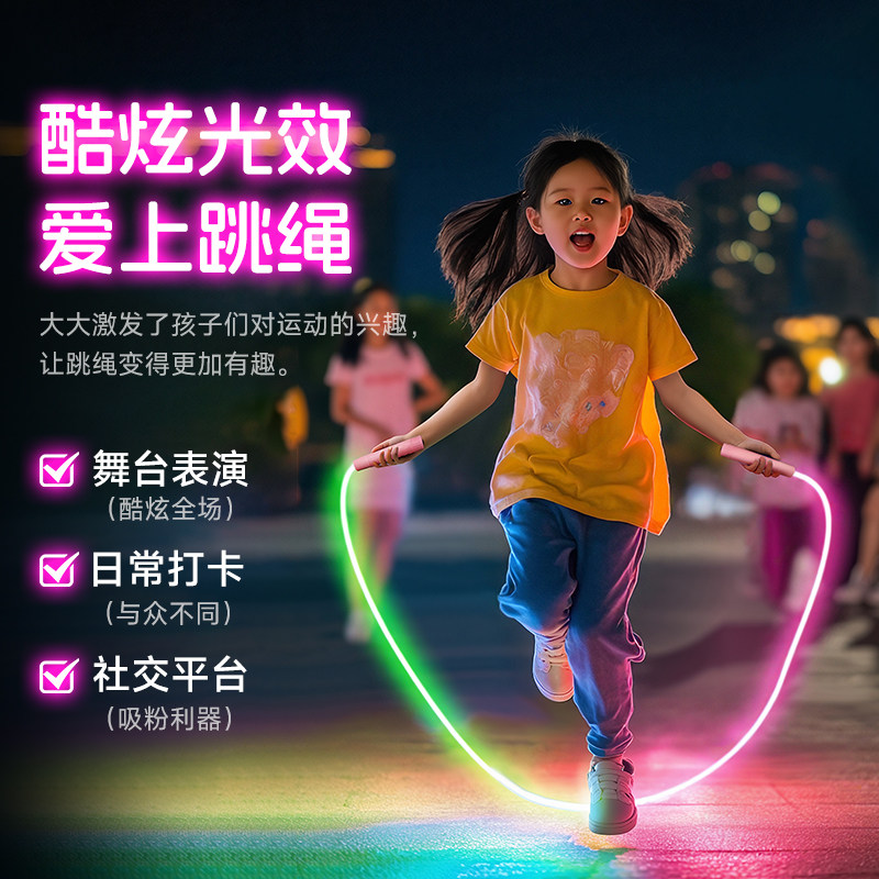 发光跳绳儿童小学生专用幼儿园初学夜光闪光炫彩荧光成人减肥健身