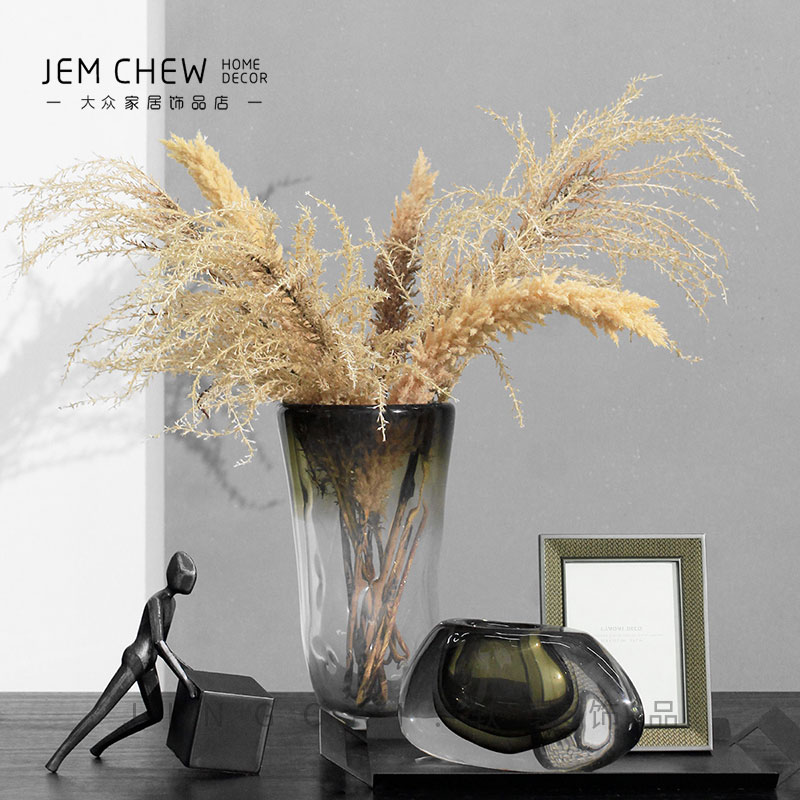 轻奢现代绿色花瓶花艺套装样板间售楼处酒店玄关客厅家居装饰品