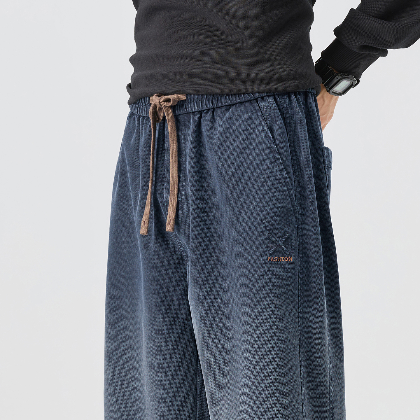 加绒保暖冬装松紧腰莱赛尔休闲裤男宽松百搭加厚锁温御寒阔腿裤