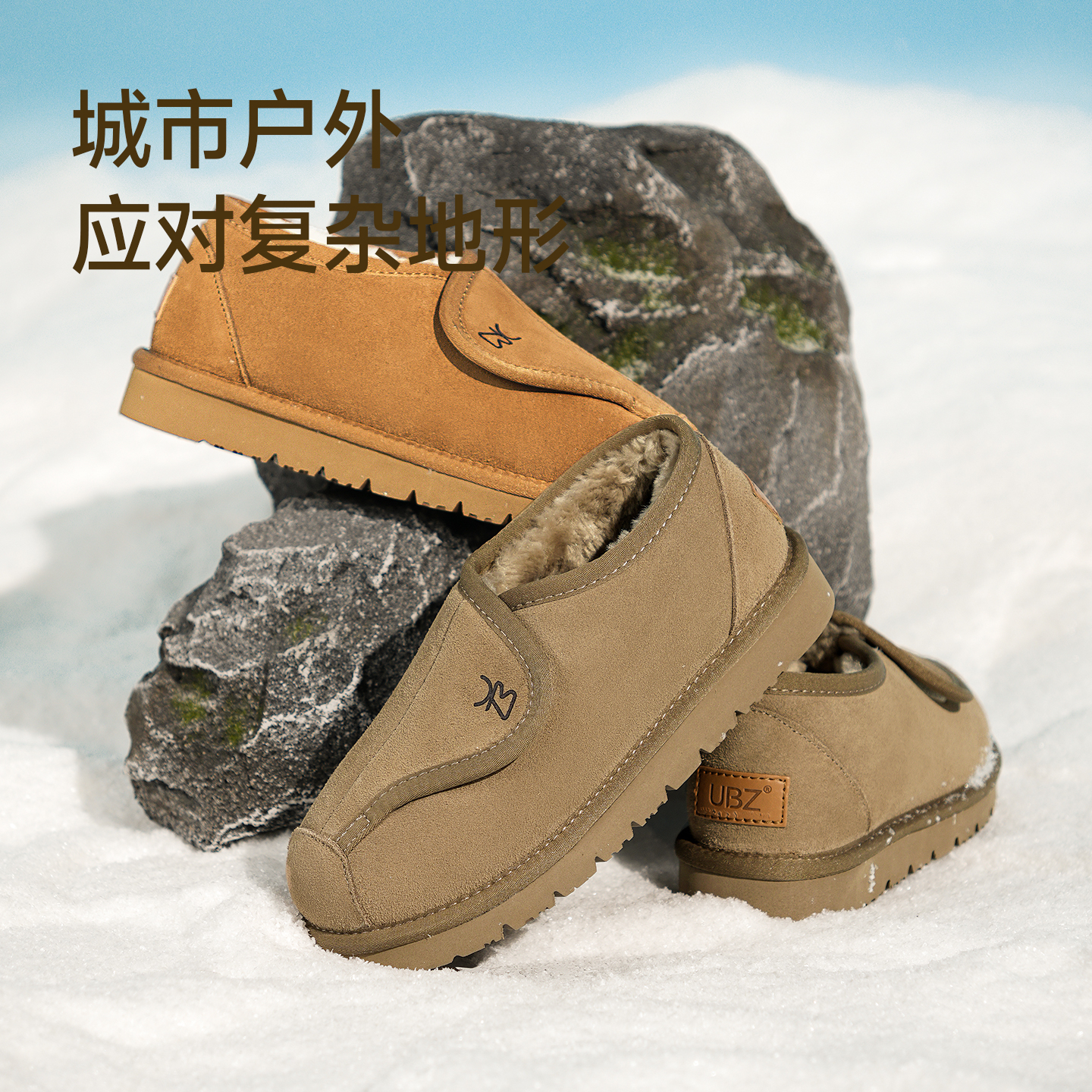 UBZ 防水加绒雪地靴男2025年冬季新款魔术贴保暖休闲百搭复古棉鞋