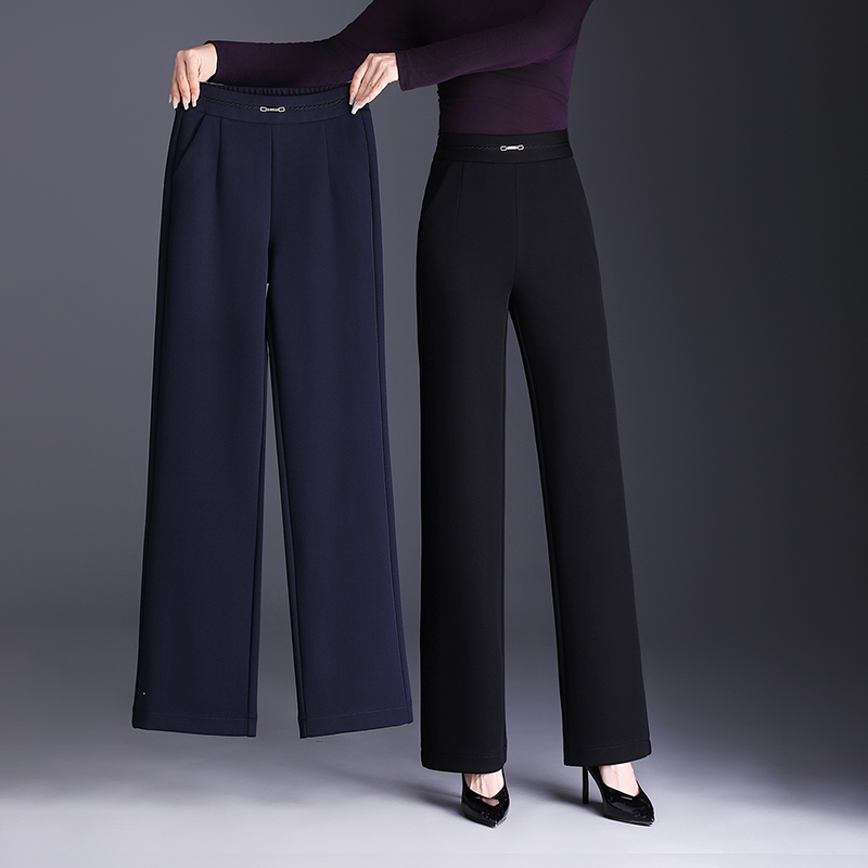 2025秋冬加绒加厚阔腿裤女裤松紧腰直筒裤高腰长裤子女新款西装裤