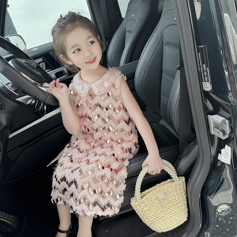 女童2025夏季洋气亮片珍珠连衣裙