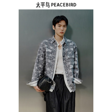 太平鸟男装 休闲衬衫男士时尚外穿式衬衫潮流休闲新中式长袖衬衫