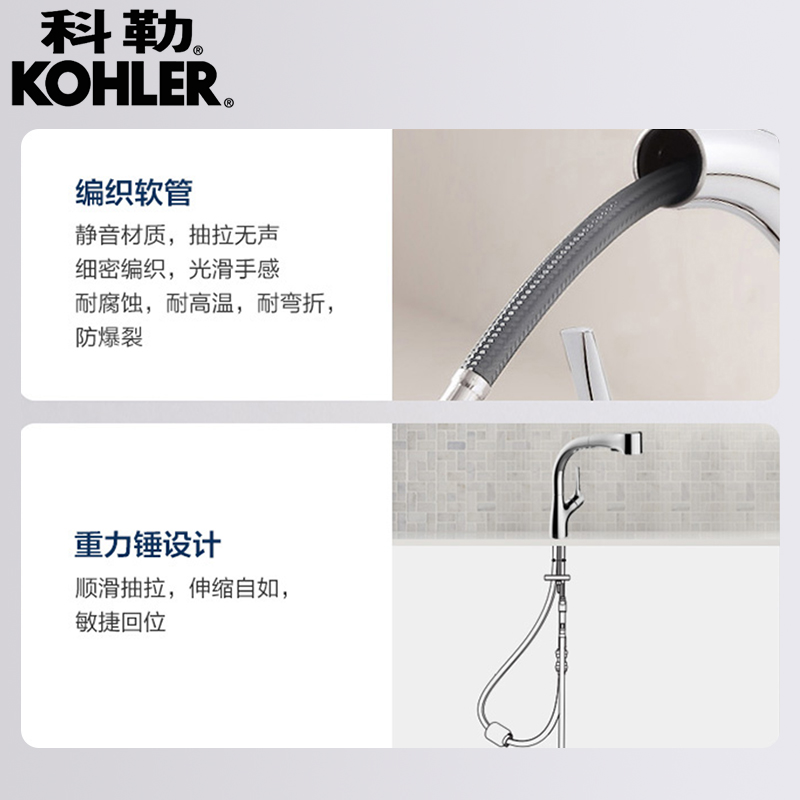 科勒水槽龙头厨房洗菜盆洗碗池冷热水抽拉式依莱单把水龙头13963T