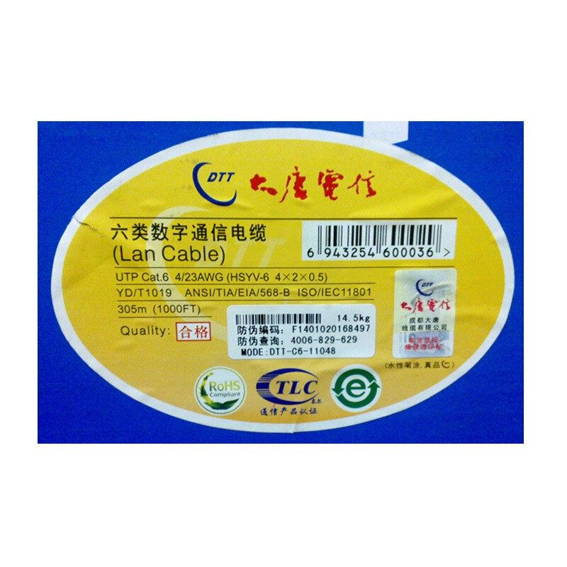 大唐超五类网线电信级六类非屏蔽千兆家用无氧铜双绞线国标监控线