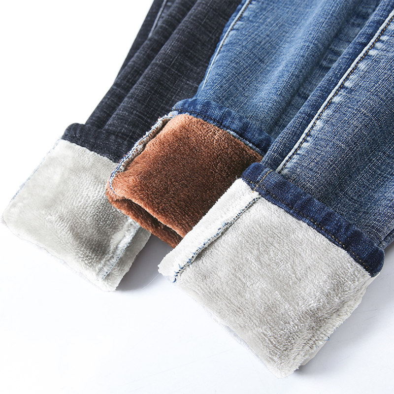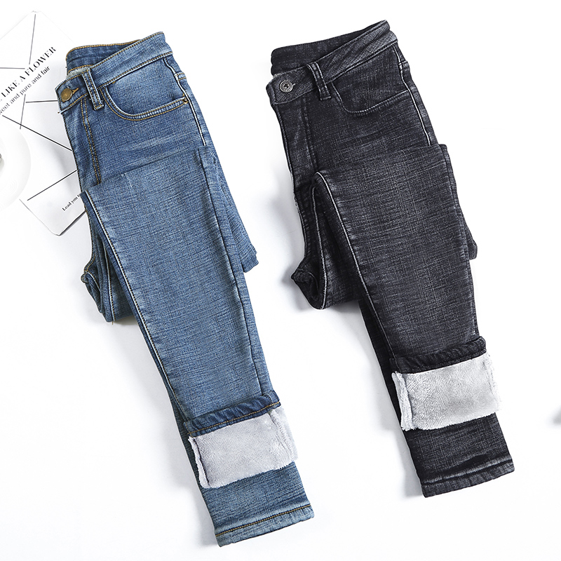 加绒牛仔裤女2024新款秋冬季加厚保暖弹力高腰显瘦九分小脚长裤子