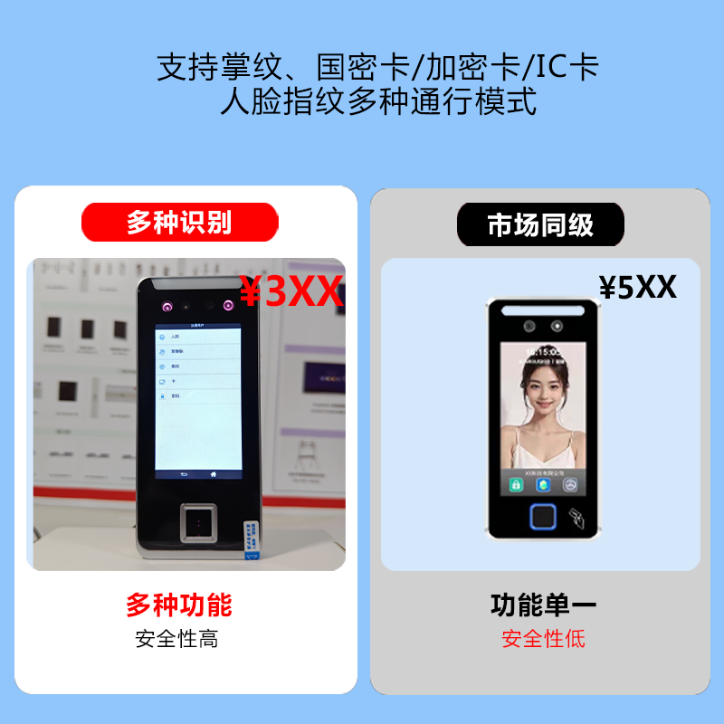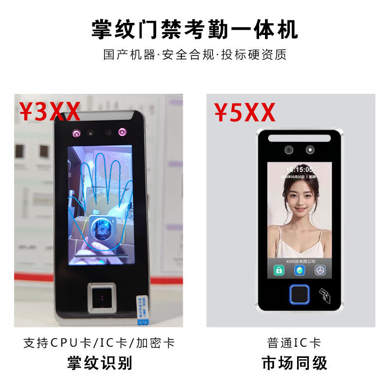 国产5寸动态人脸门禁一体机指纹掌静脉刷卡打卡考勤门禁系统套装