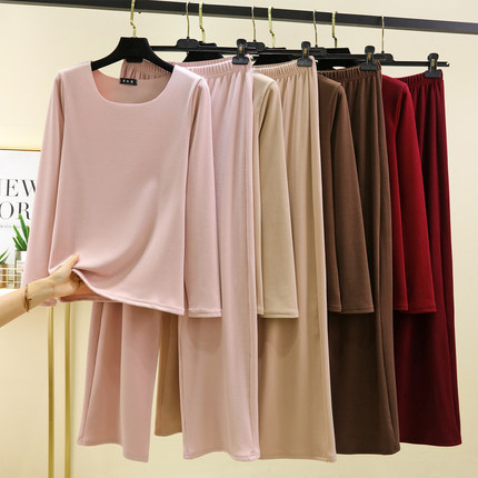 冬季新款德绒加绒加厚保暖家居服套装女士大码防寒睡衣睡裤两件套