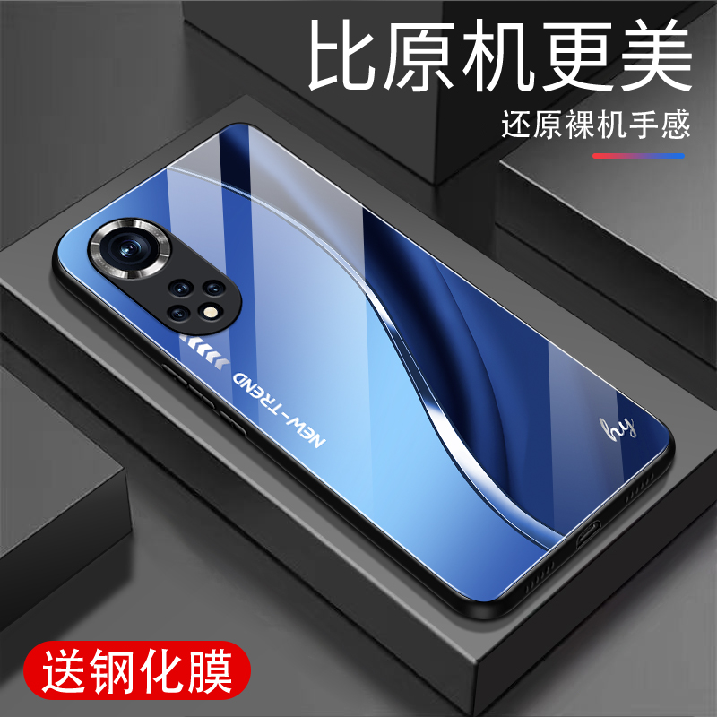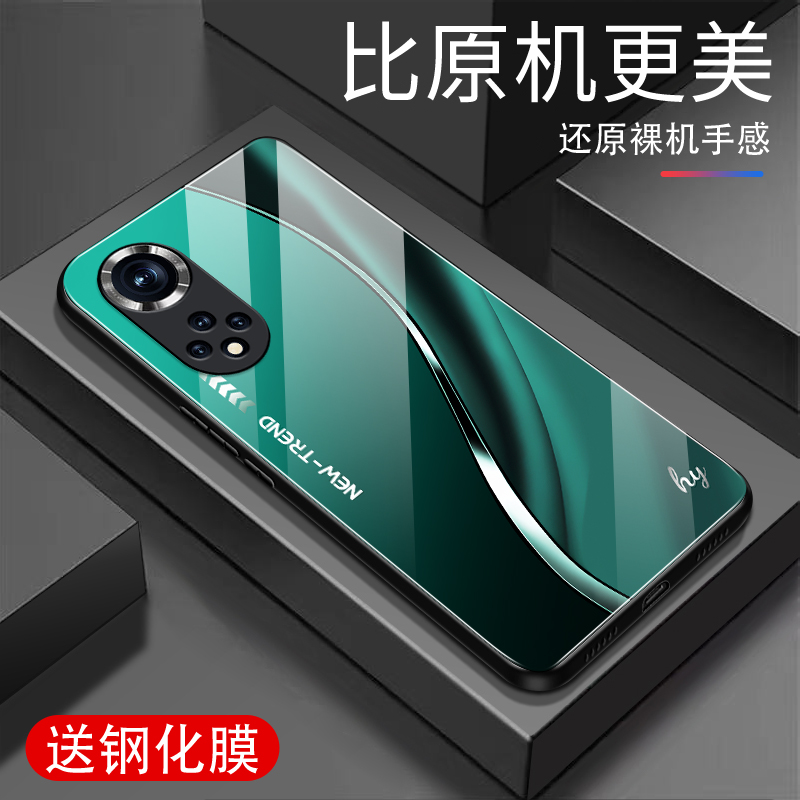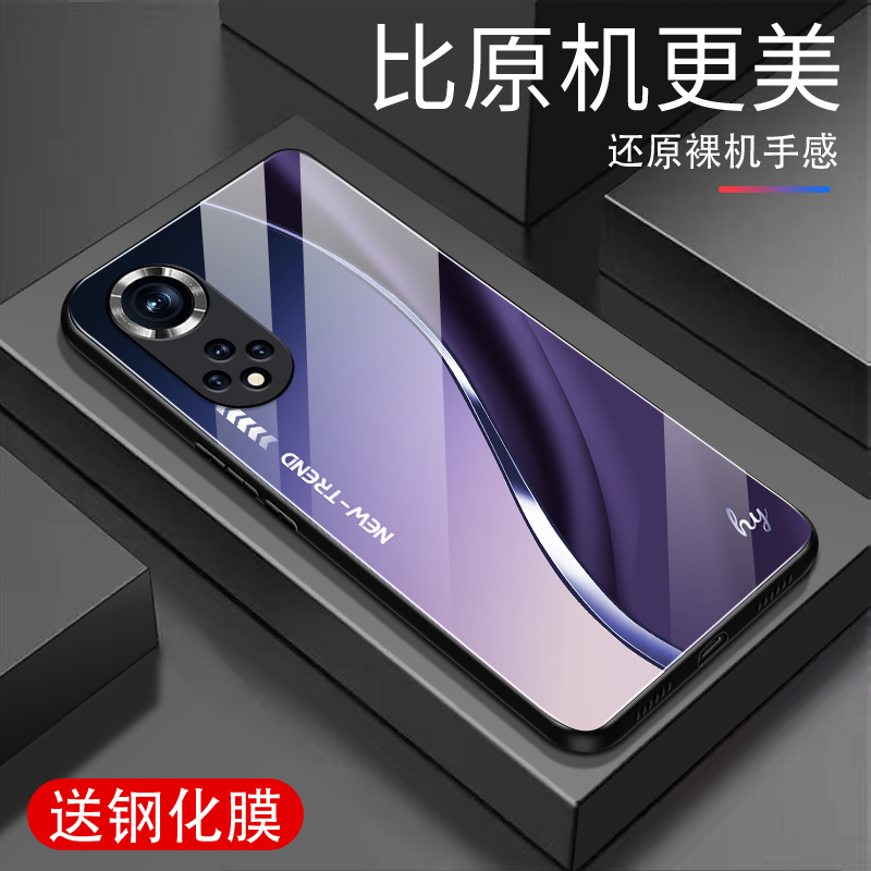 适用荣耀50手机壳新款华为荣耀50钢化玻璃保护套防摔硅胶小众全包网红潮牌男女个性创意高级感简约渐变色外壳