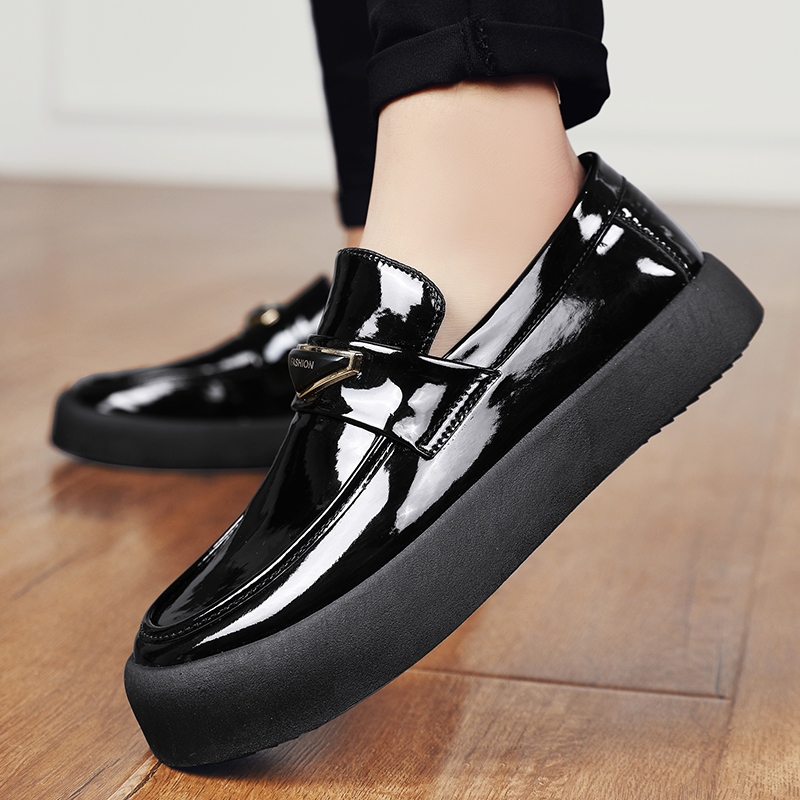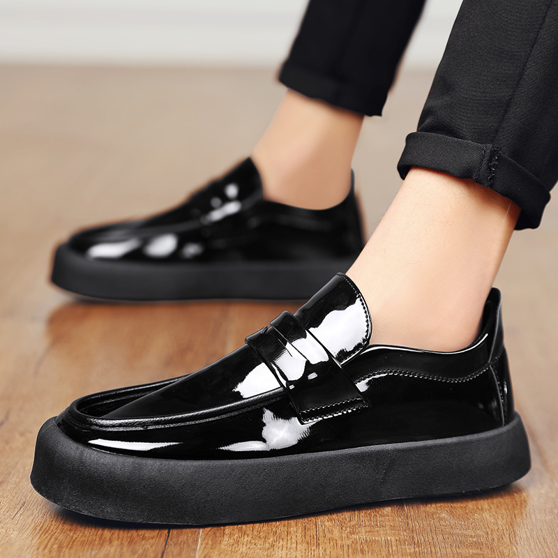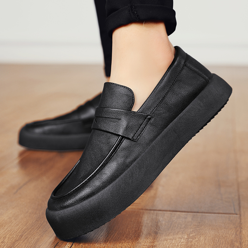 厨师鞋男厚底防水防滑皮鞋男士套脚休闲乐福鞋懒人鞋豆豆鞋男百搭