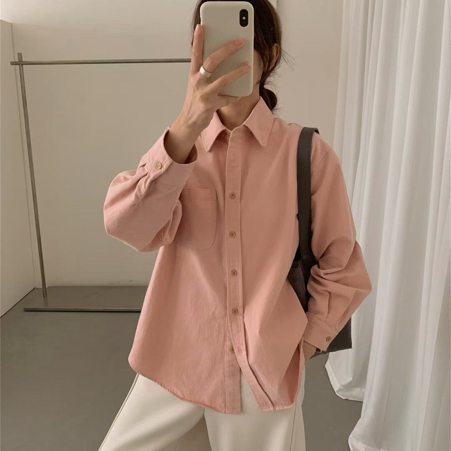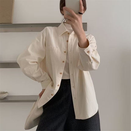 韩版POLO领长袖衬衫女2026春季新款宽松透气气质轻奢纯棉衬衣上衣